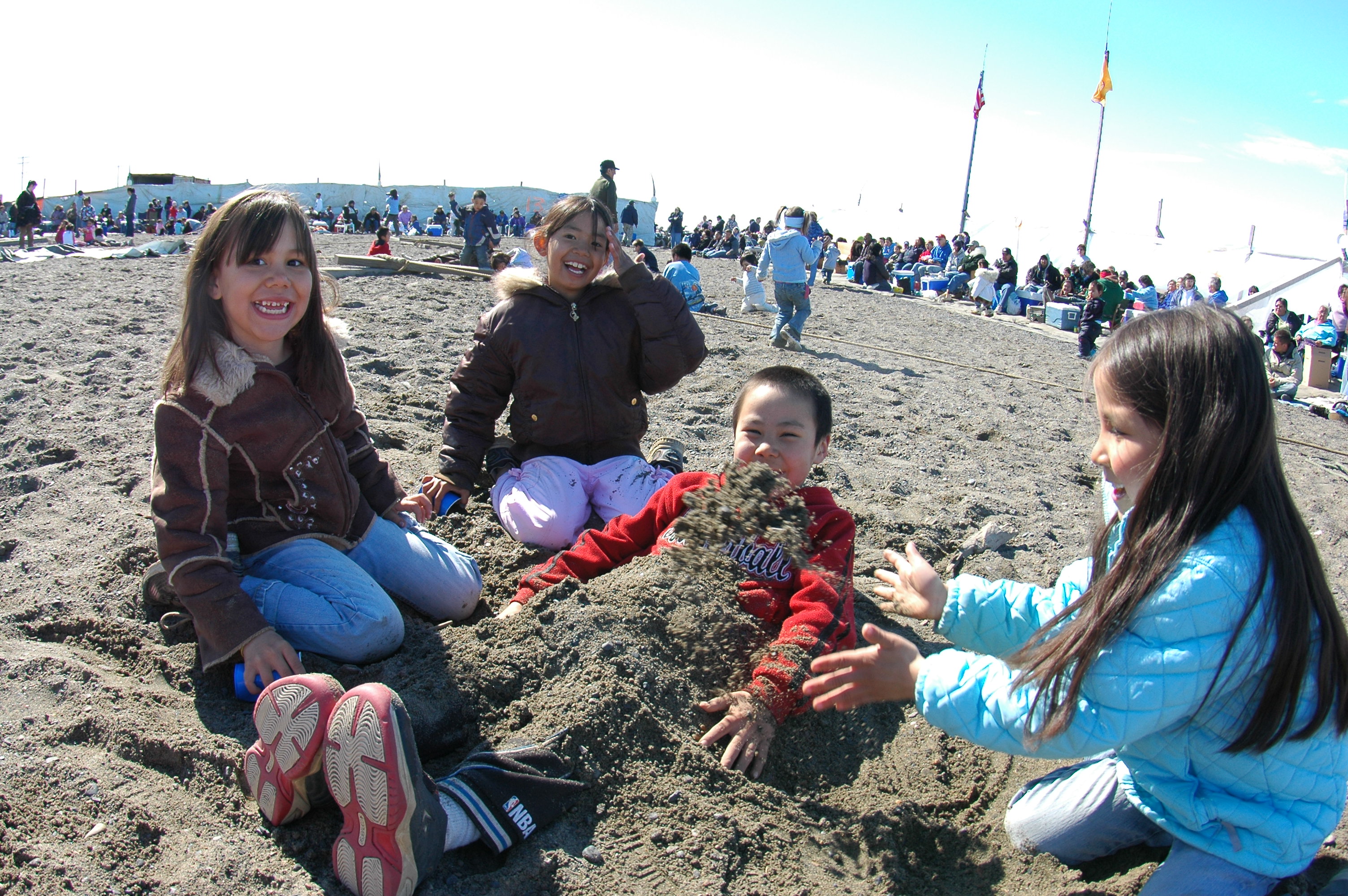 Elizabeth Eubanks says, "No matter where you go, if kids are near sand someone is going to get buried in it!" On the beach in Barrow, Alaska.