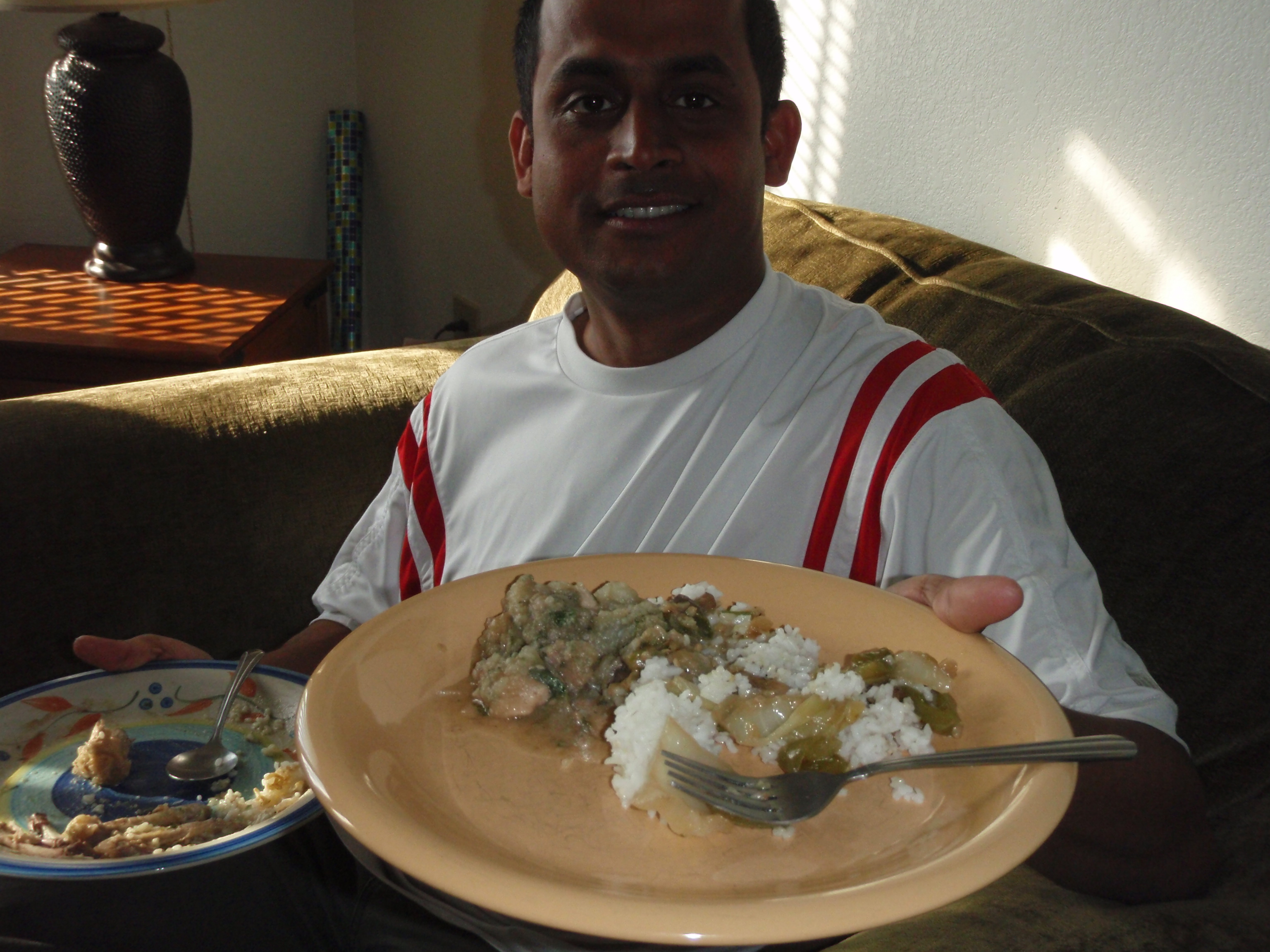 Elizabeth Eubanks says, "Santunu prepares an awesome Indian dish for a relaxing Sunday evening dinner." Barrow, Alaska.
