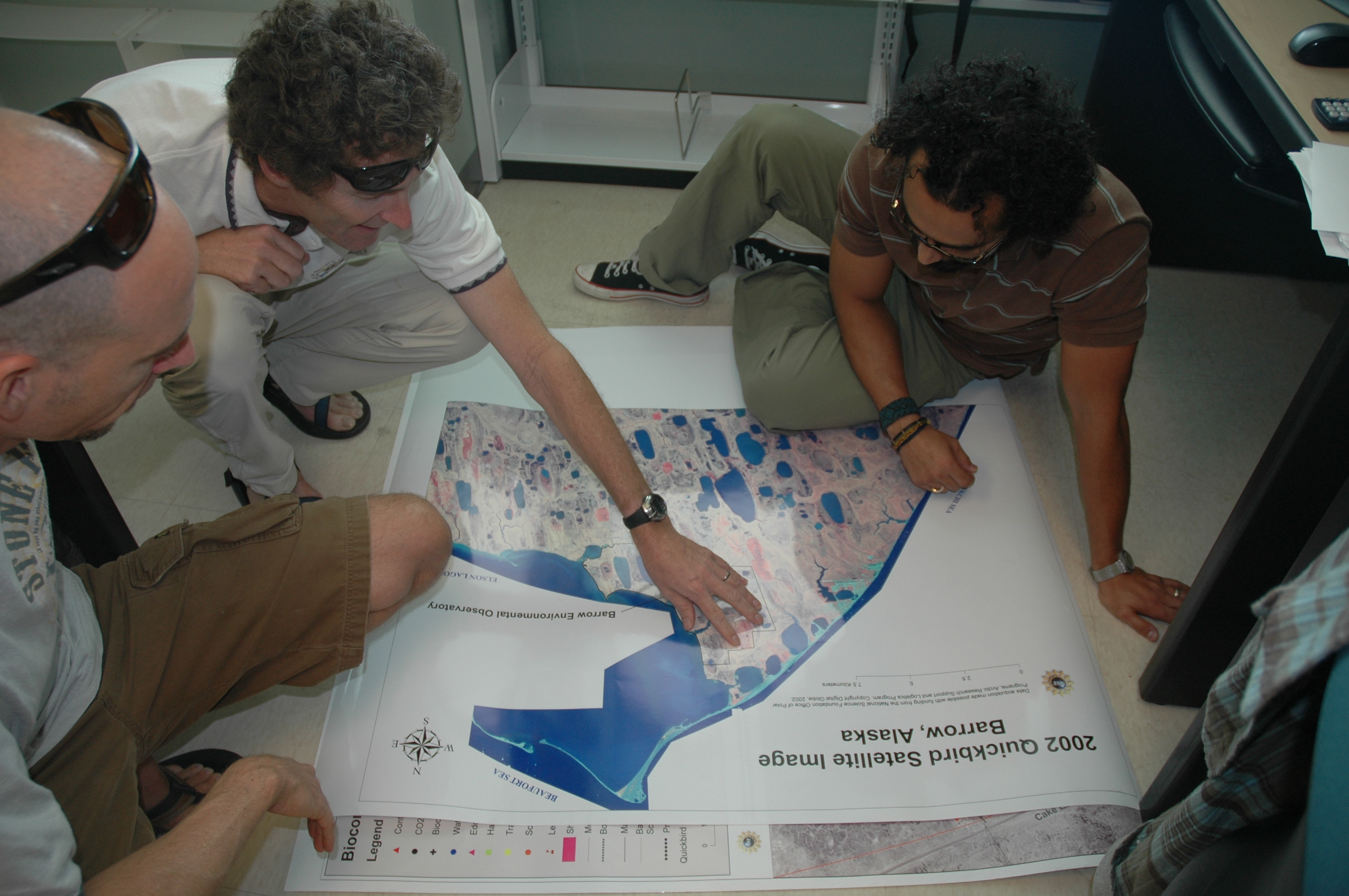 Dr. Steve Oberbauer (center) shows Rob Eubanks (left) where they will be working in Barrow, Alaska. Paulo Olivas (right) adds comments about the site. Dr. Steve Oberbauer's lab at Florida International University in Miami, Florida.