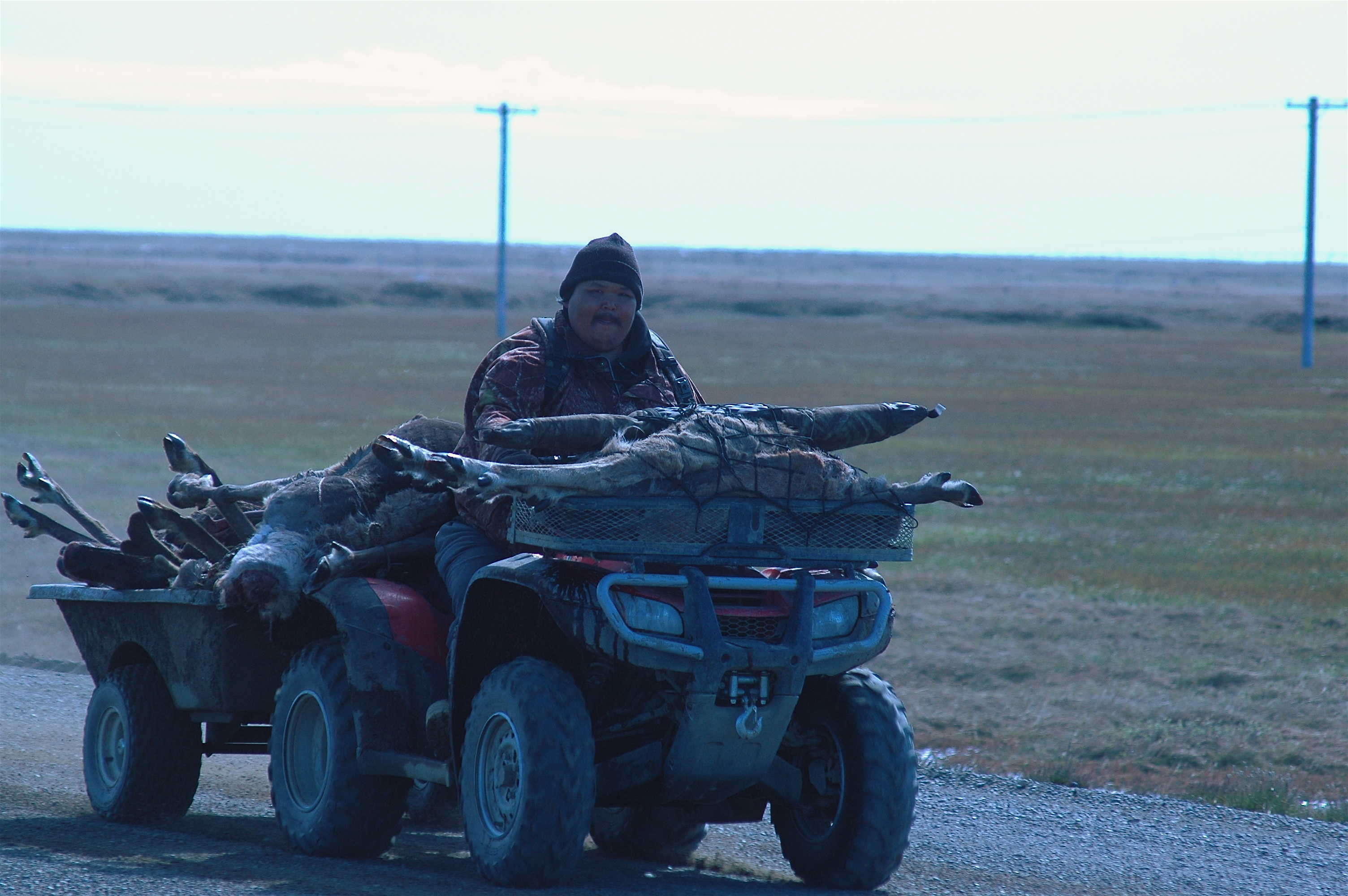 This ATV and one other were loaded with freshly hunted caribou as they drove down Cake Eater Road, near the Barrow Environmental Observatory (BEO) field site near Barrow, Alaska.