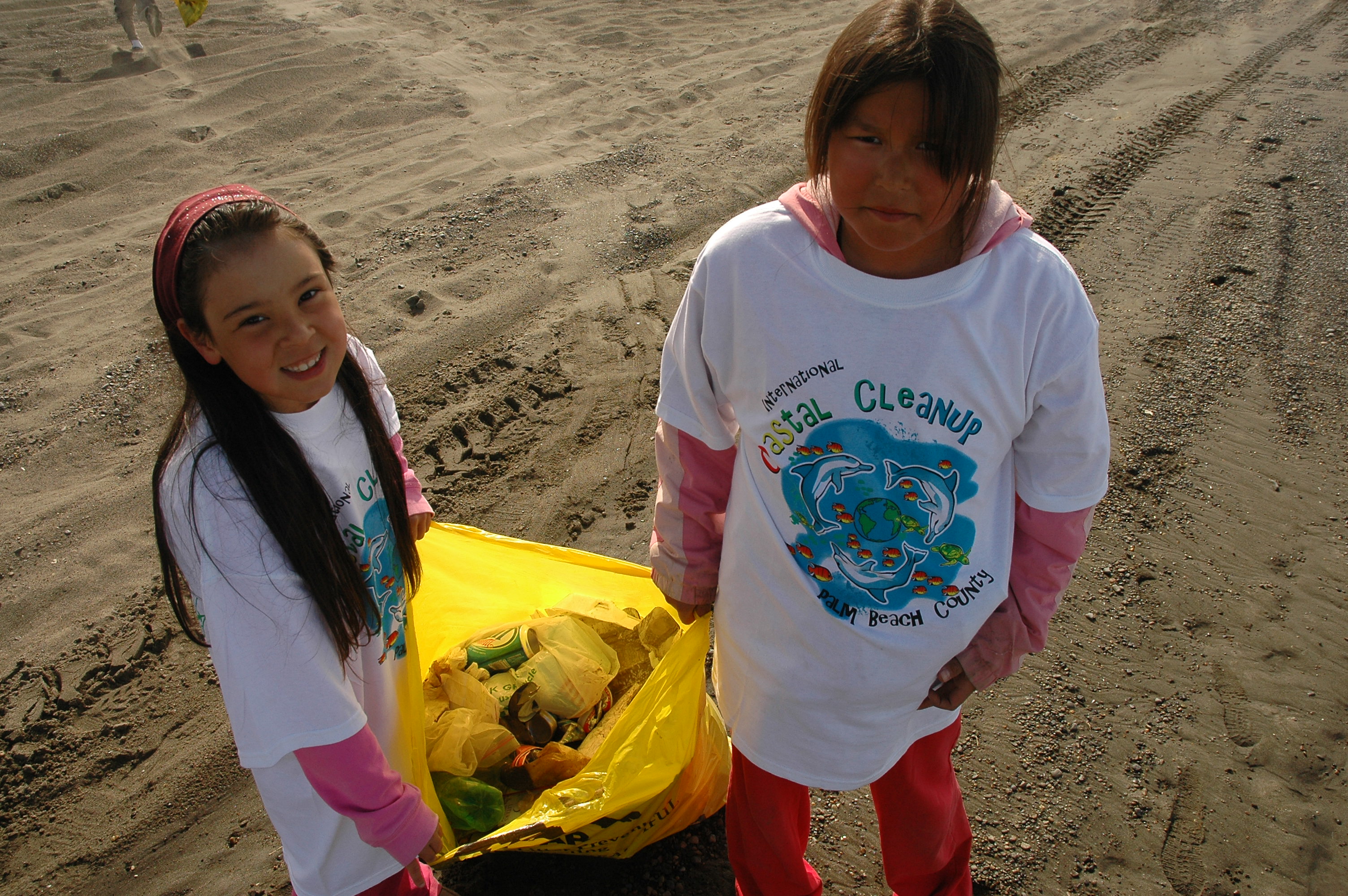 These two yound ladies had only been cleaning for 30 minutes and already had a heavy bag. On the beach in Barrow, Alaska.