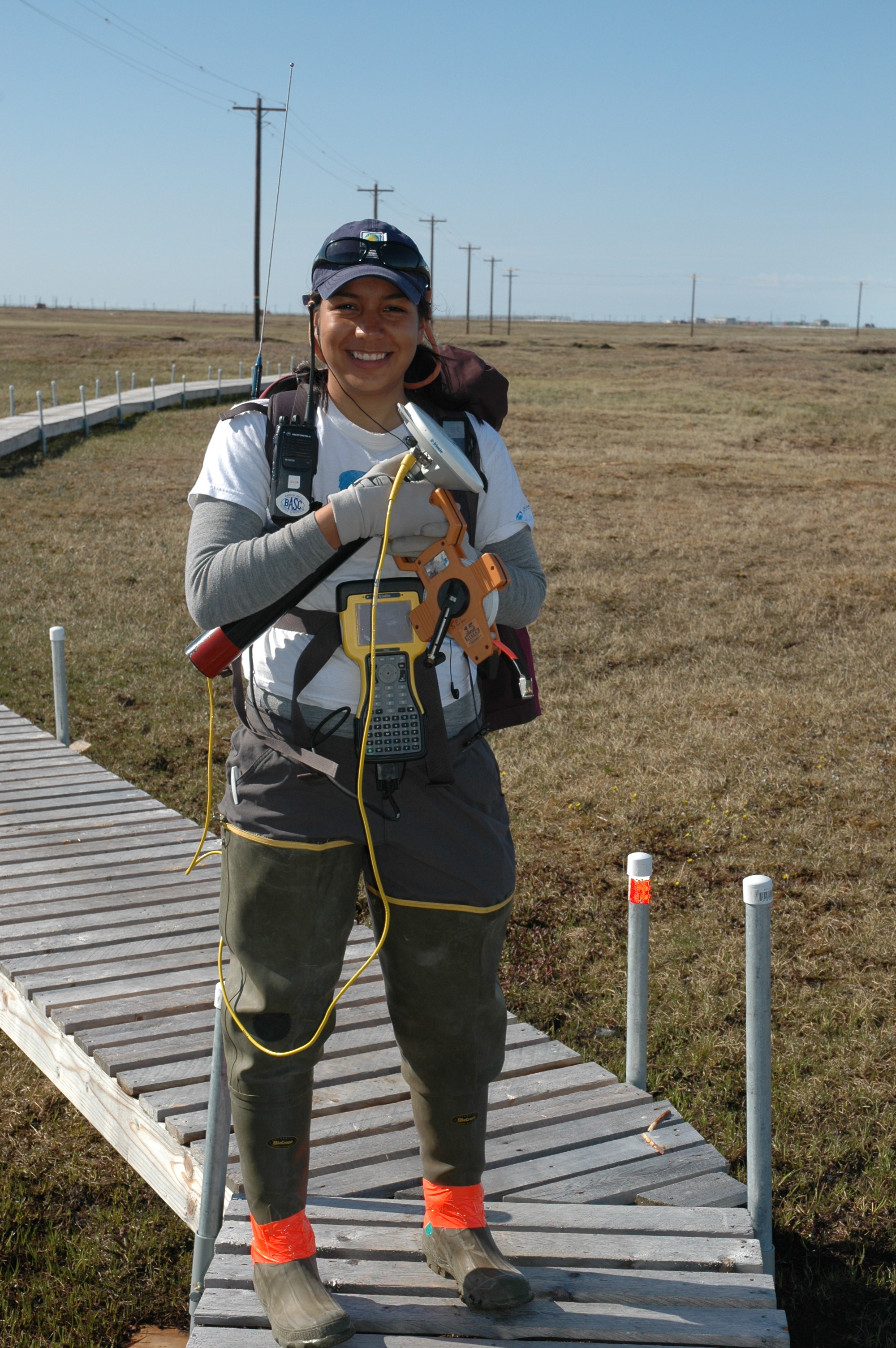 Gilda Victorino is from Univeristy of Texas in El Paso. In the beginning of the season she measured the water table every single day. At the Barrow Environmental Observatory (BEO) field site near Barrow, Alaska.