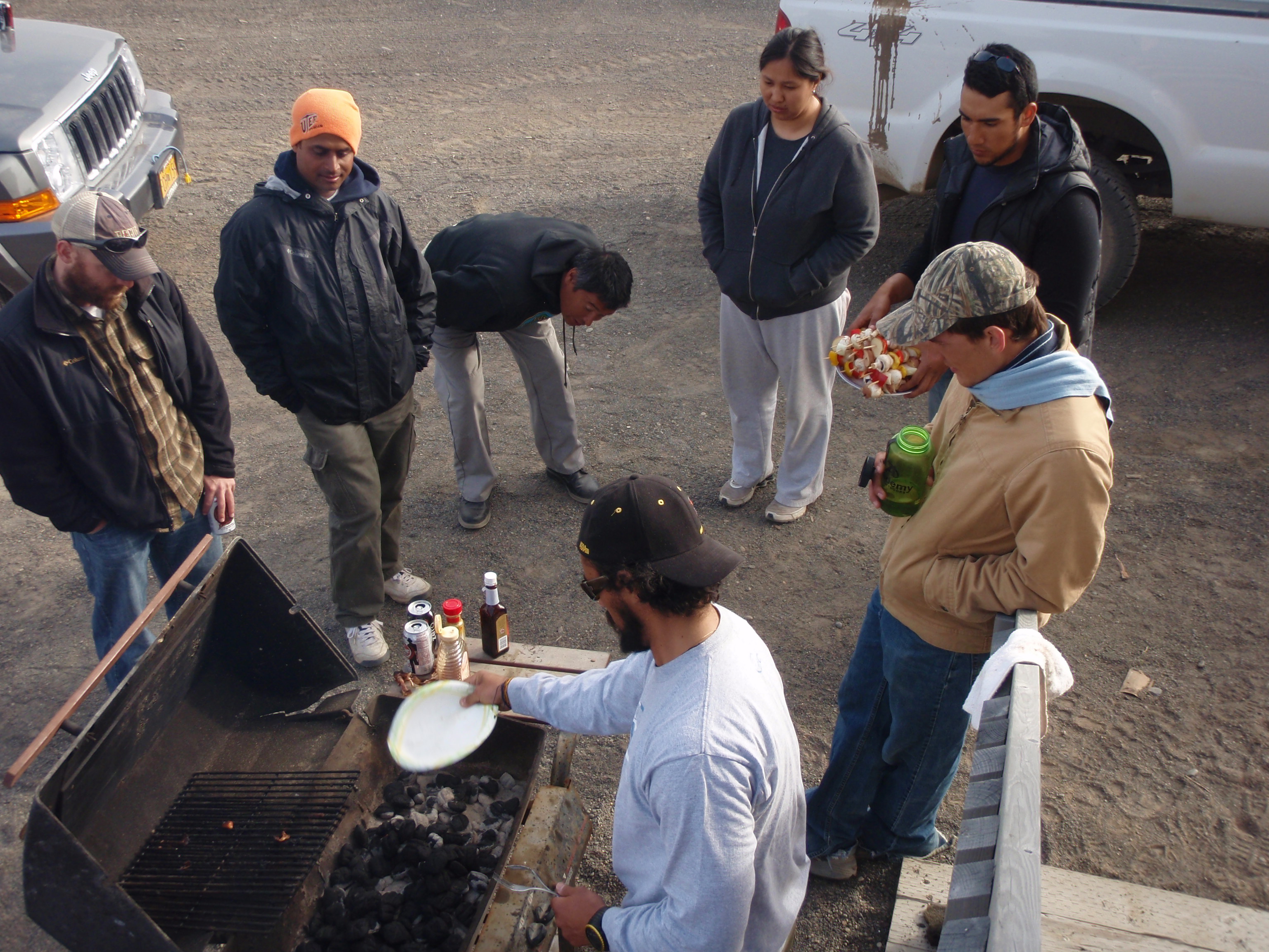Fourth of July grilling -- the American tradtion with traditional food and even a little reindeer. Barrow, Alaska.