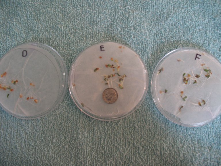 These are alfalfa sprouts that are part of the Alfalfa Germination Project. These belong to St. Mark 7th grade students Hayley and Matthew. These are their seeds that are placed in the light. At St. Mark Catholic School in Boynton Beach, Florida.