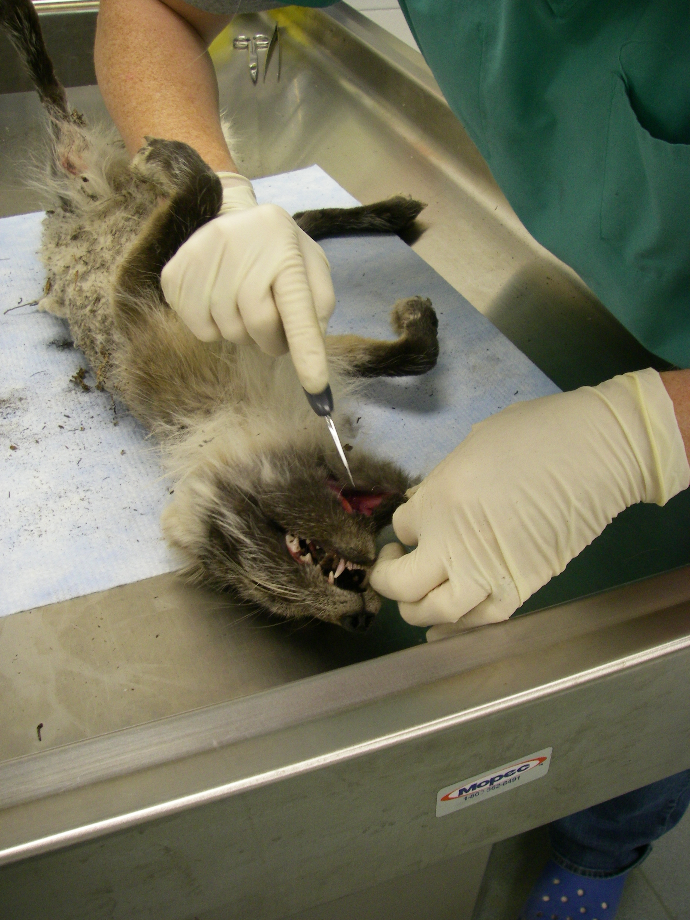 The first incision is near the front of the jaw. The first task for Greta is to separate skin from underlying muscle tissue. She explains the different muscles and fatty tissues she sees as she quickly works. Barrow, Alaska.