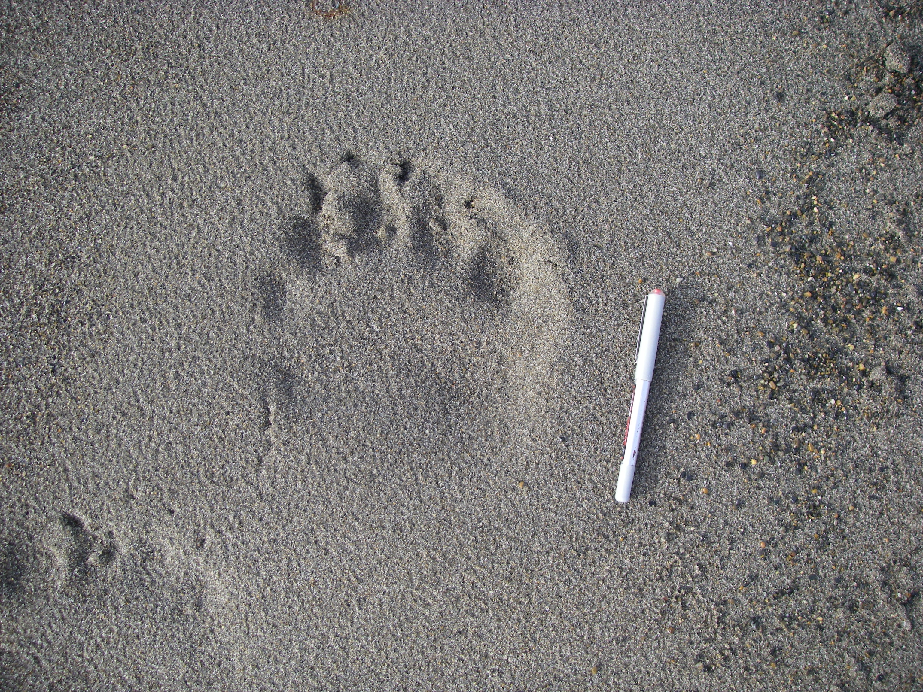 Frank Kelley says, "another sighting of polar bear prints today down on the beach. Rumor has it a bear was seen swimming out in the lagoon yesterday. I hope it keeps a safe distance from all the scientists and VIPs." Barrow, Alaska.