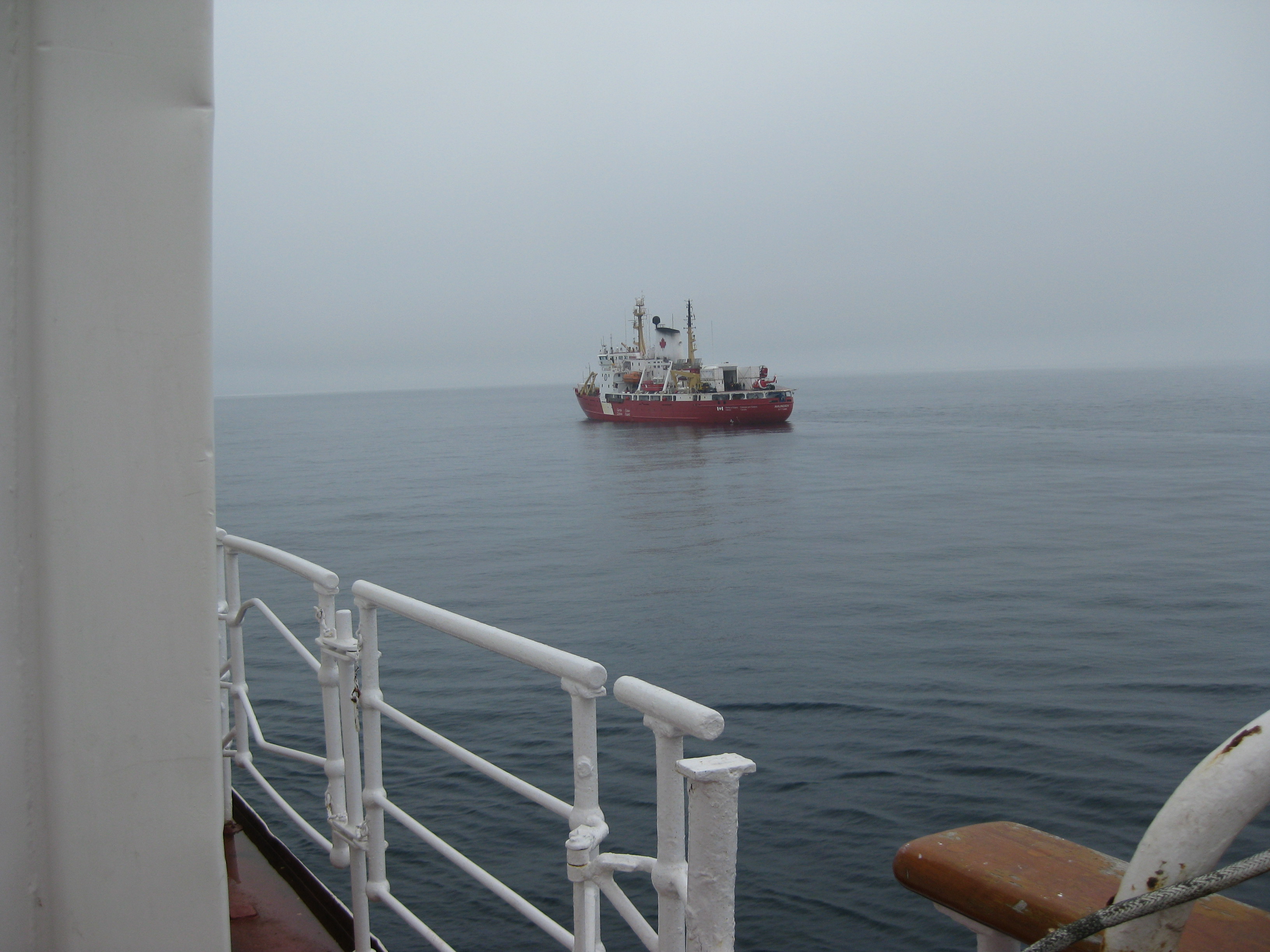 The CCGS Amundsen icebreaker has been at sea for more than eight months. The CCGS Louis S. St-Laurent was "the ship of opportunity" meaning that they were the first ship to travel near the Amundsen. Aboard the Canadian Coast Guard icebreaker Louis S. St-Laurent, on the Beaufort Sea.