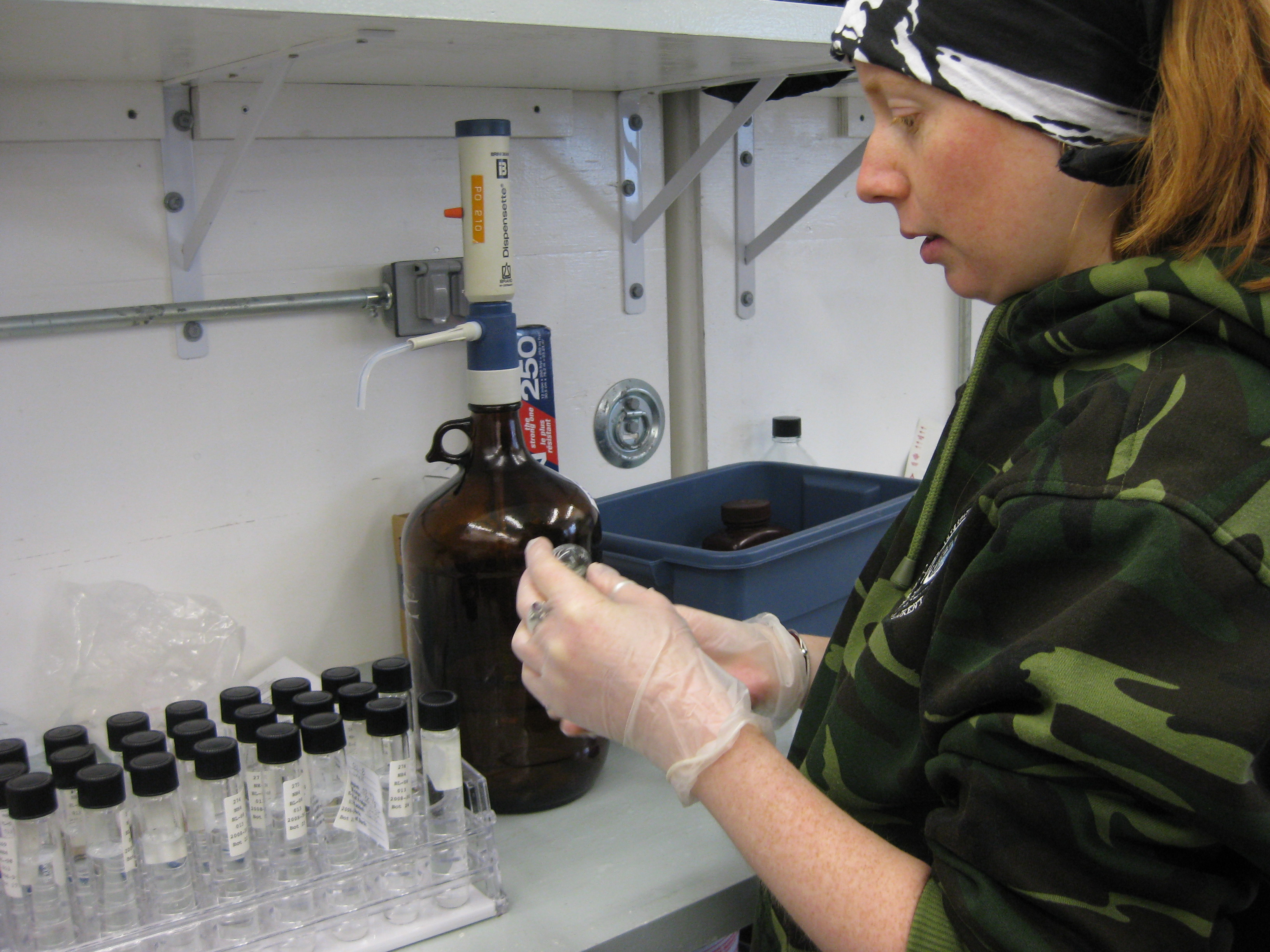Melissa prepares her samples for nitrogen measurement. In the Rosette shack, aboard the Canadian Coast Guard icebreaker Louis S. St-Laurent, on the Beaufort Sea.