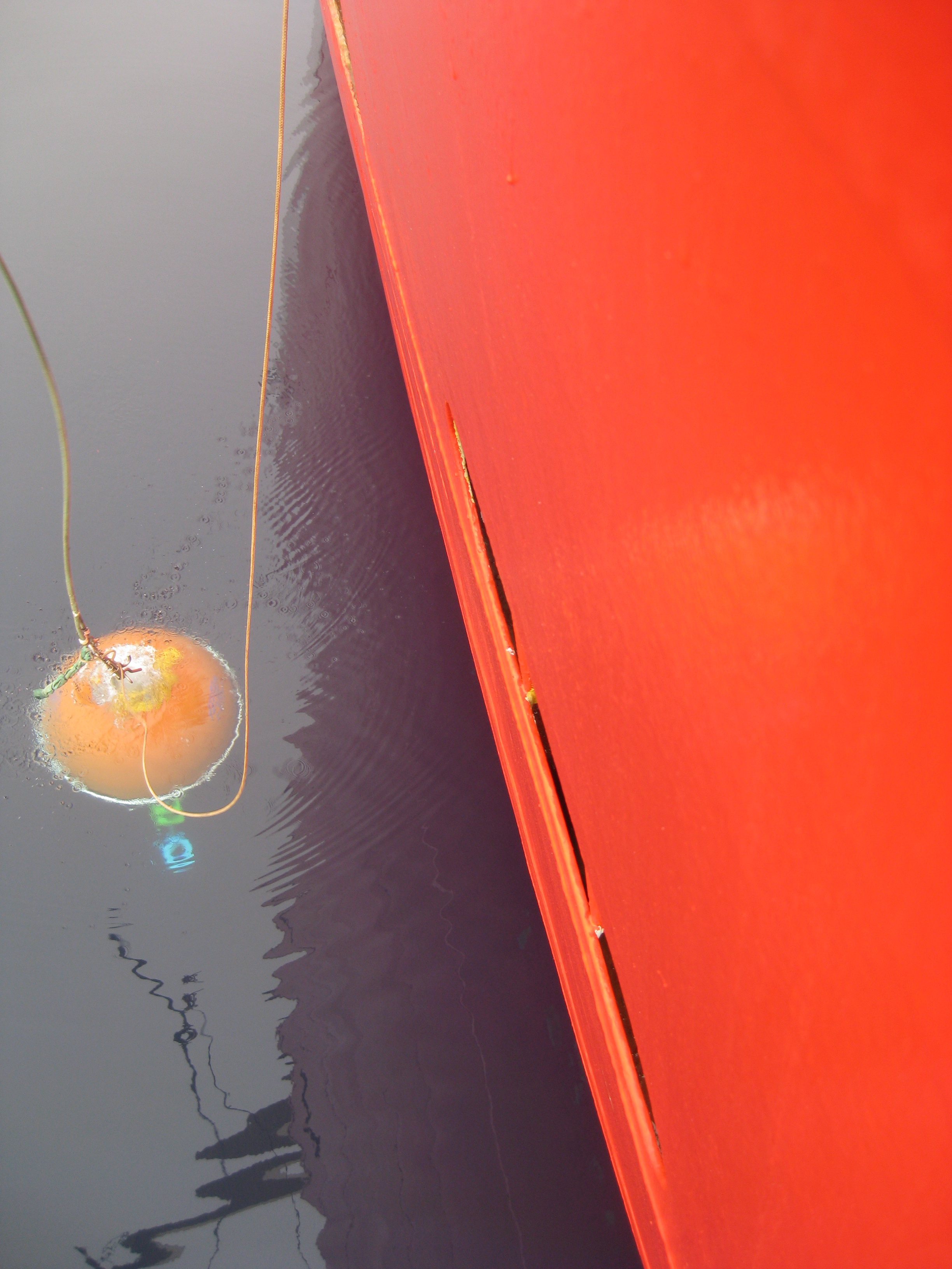 The hook is released from the top float. Aboard the Canadian Coast Guard icebreaker Louis S. St-Laurent, on the Beaufort Sea.