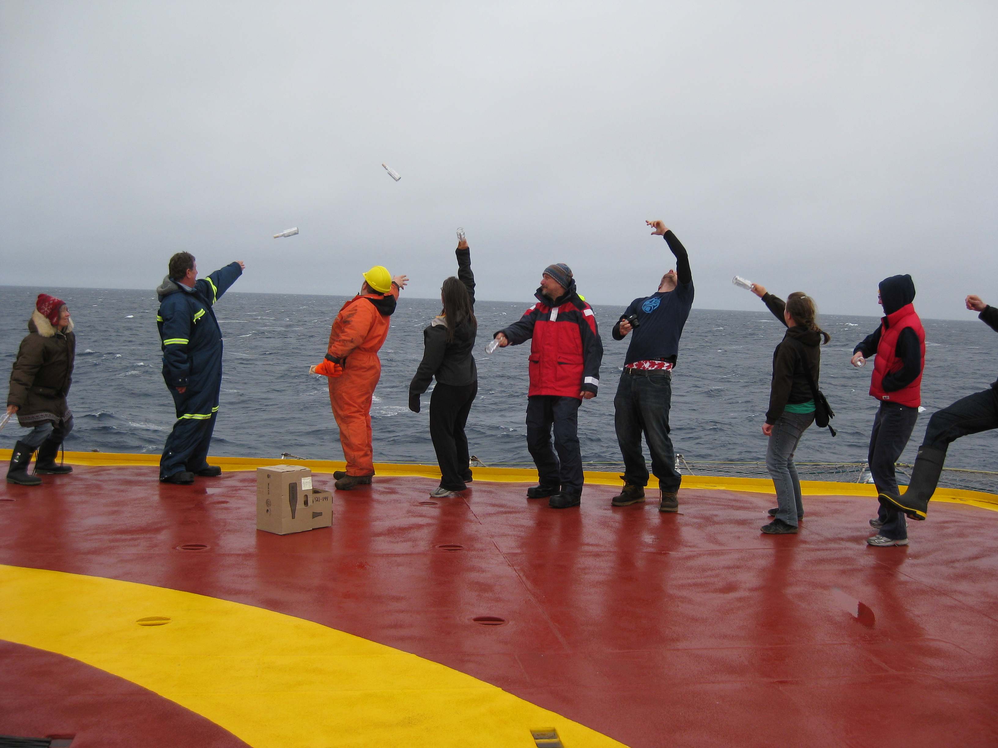 Gerty Ward says, "drift bottles have been used for centries to study ocean currents. Where will these end up?" Aboard the Canadian Coast Guard icebreaker Louis S. St-Laurent, on the Beaufort Sea.