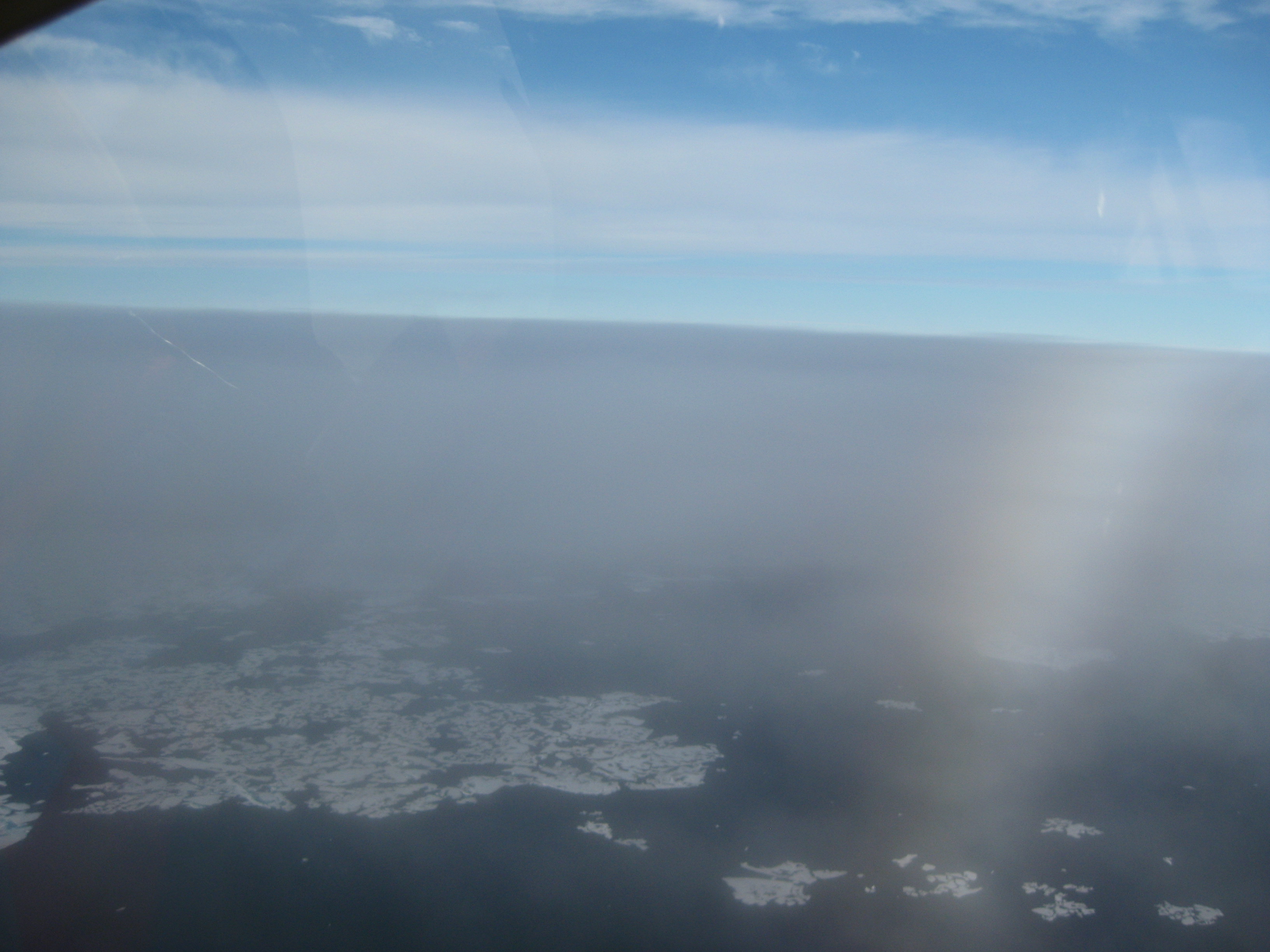 A fog bow from about 1000 feet, flying in the helicopter over the Beaufort Sea.