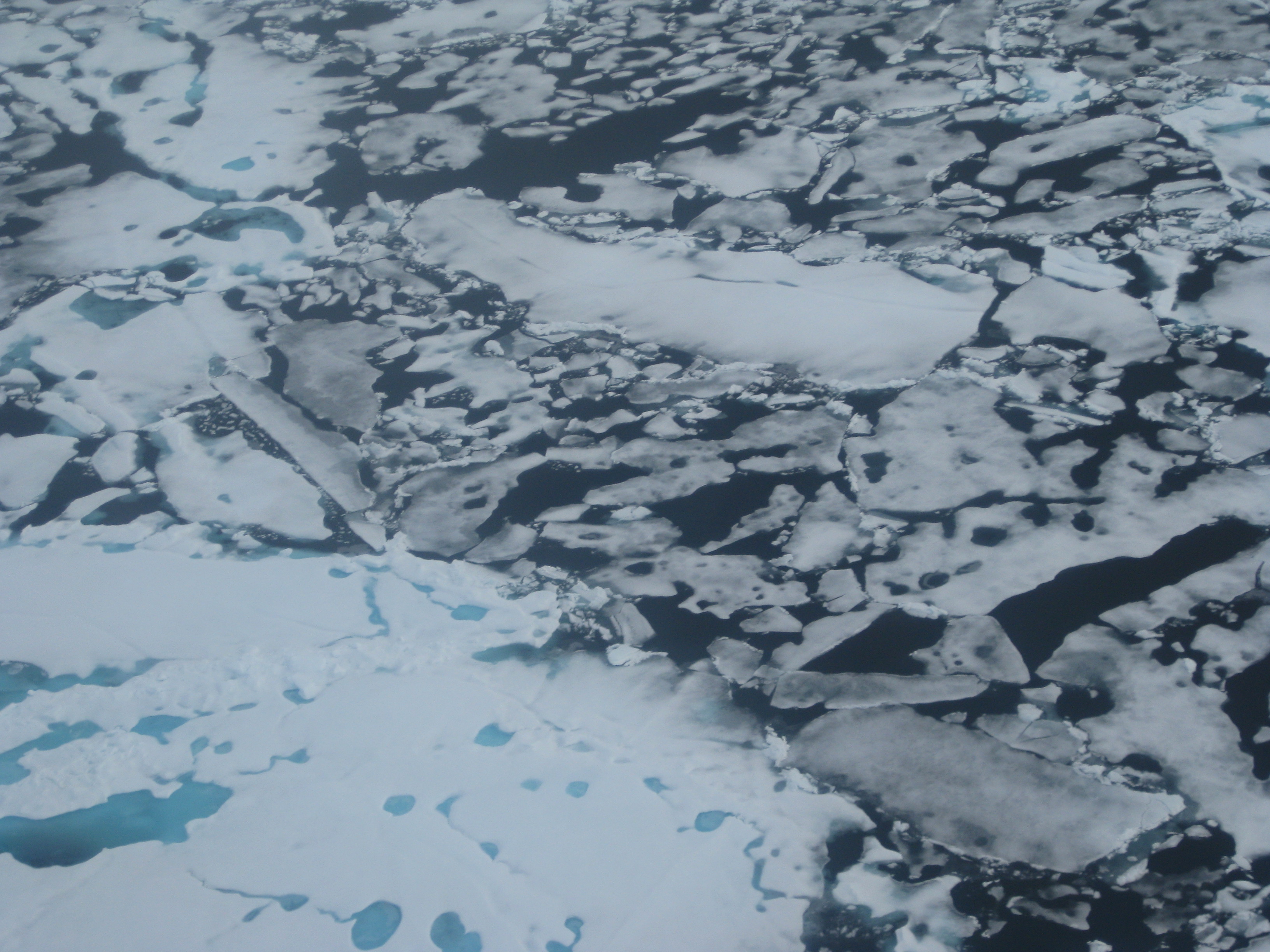 Gerty Ward says, "ice and water come in so many different shapes and hues." Flying in the helicopter over the Beaufort Sea.
