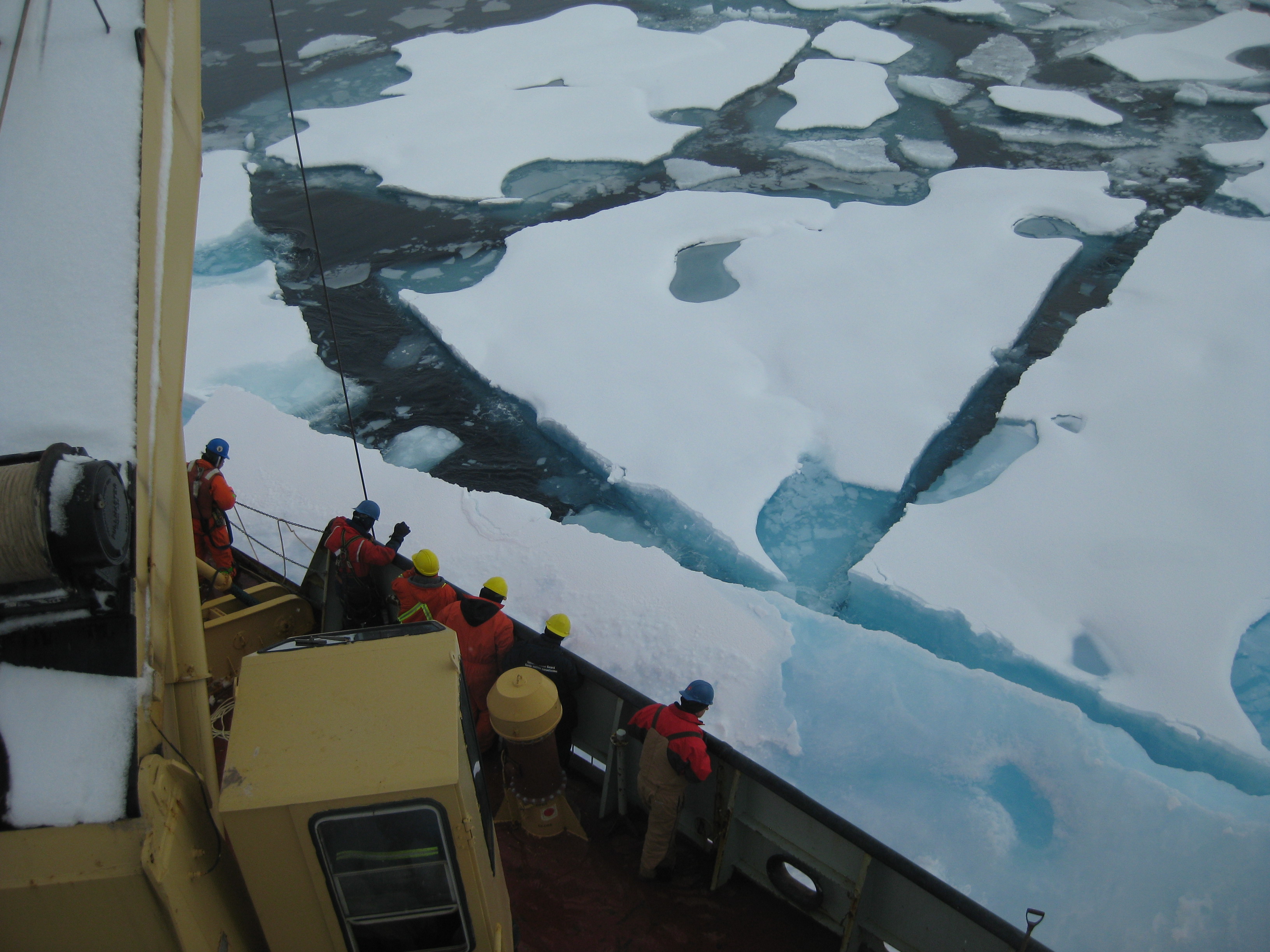 Captain McNeill has to break significant sea ice in order to clear the spot for a mooring recovery. Aboard the Canadian Coast Guard icebreaker Louis S. St-Laurent, on the Beaufort Sea.