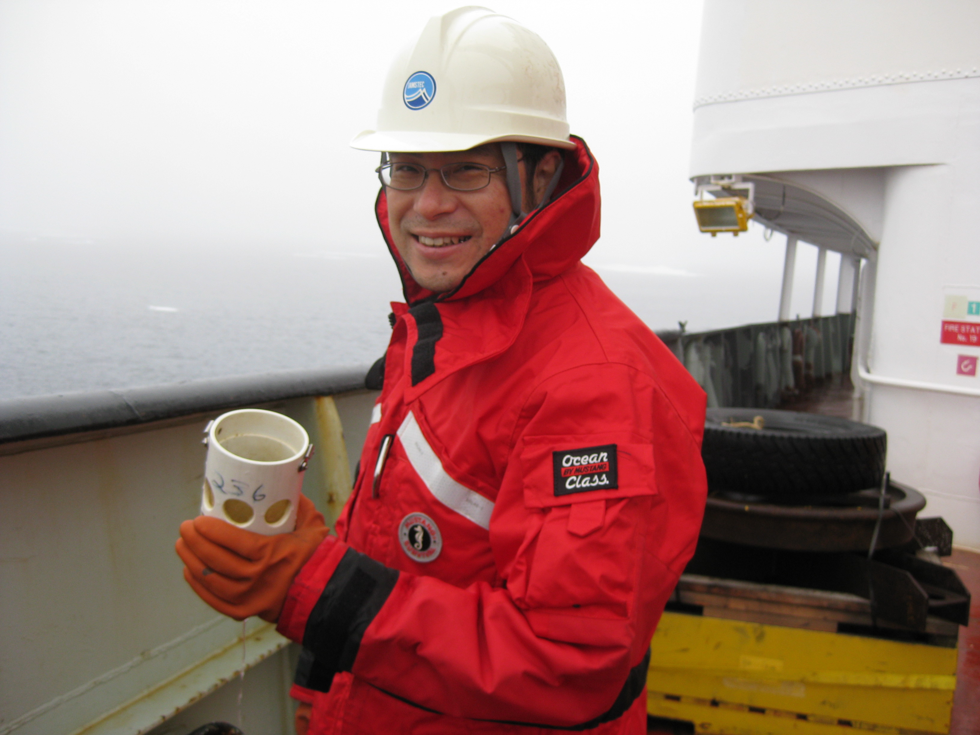 Shigeto examines what has been caught in the bongo net. He is interested in correlating water type with what might be living in it. Aboard the Canadian Coast Guard icebreaker Louis S. St-Laurent, on the Beaufort Sea.