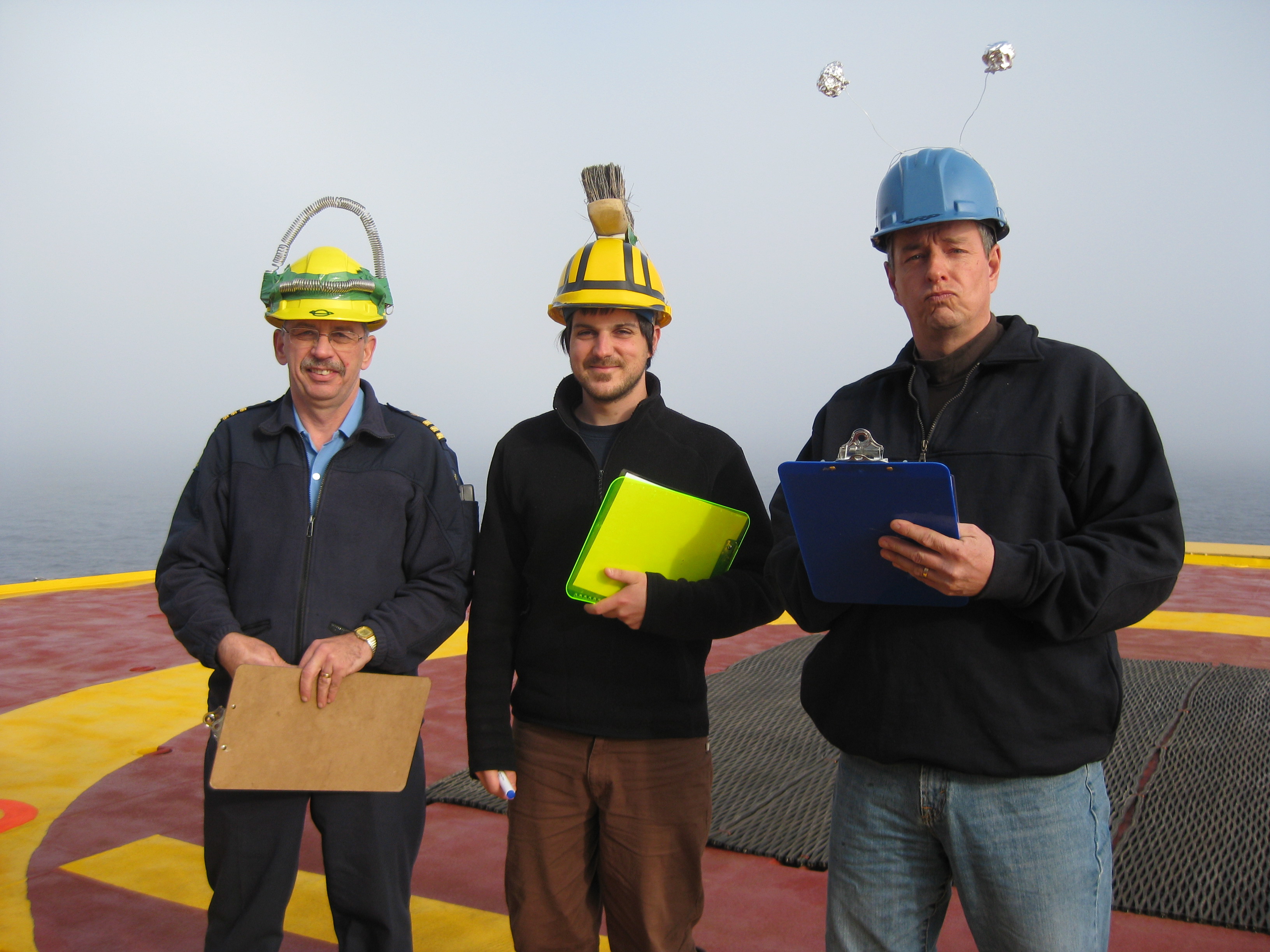 Gerty Ward says, "the Heli Deck High Dive competition was judged by some tough characters: chief officer Stan Nunn, Kenny Scozzafava and Jim Dunn." Aboard the Canadian Coast Guard icebreaker Louis S. St-Laurent, on the Beaufort Sea.