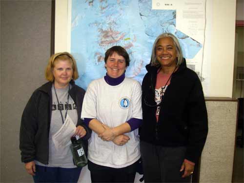 PolarTREC teachers from left to right, Cameo Slaybaugh, Robin Ellwood, and Jacquelyn Hams. McMurdo Station, Antarctica.