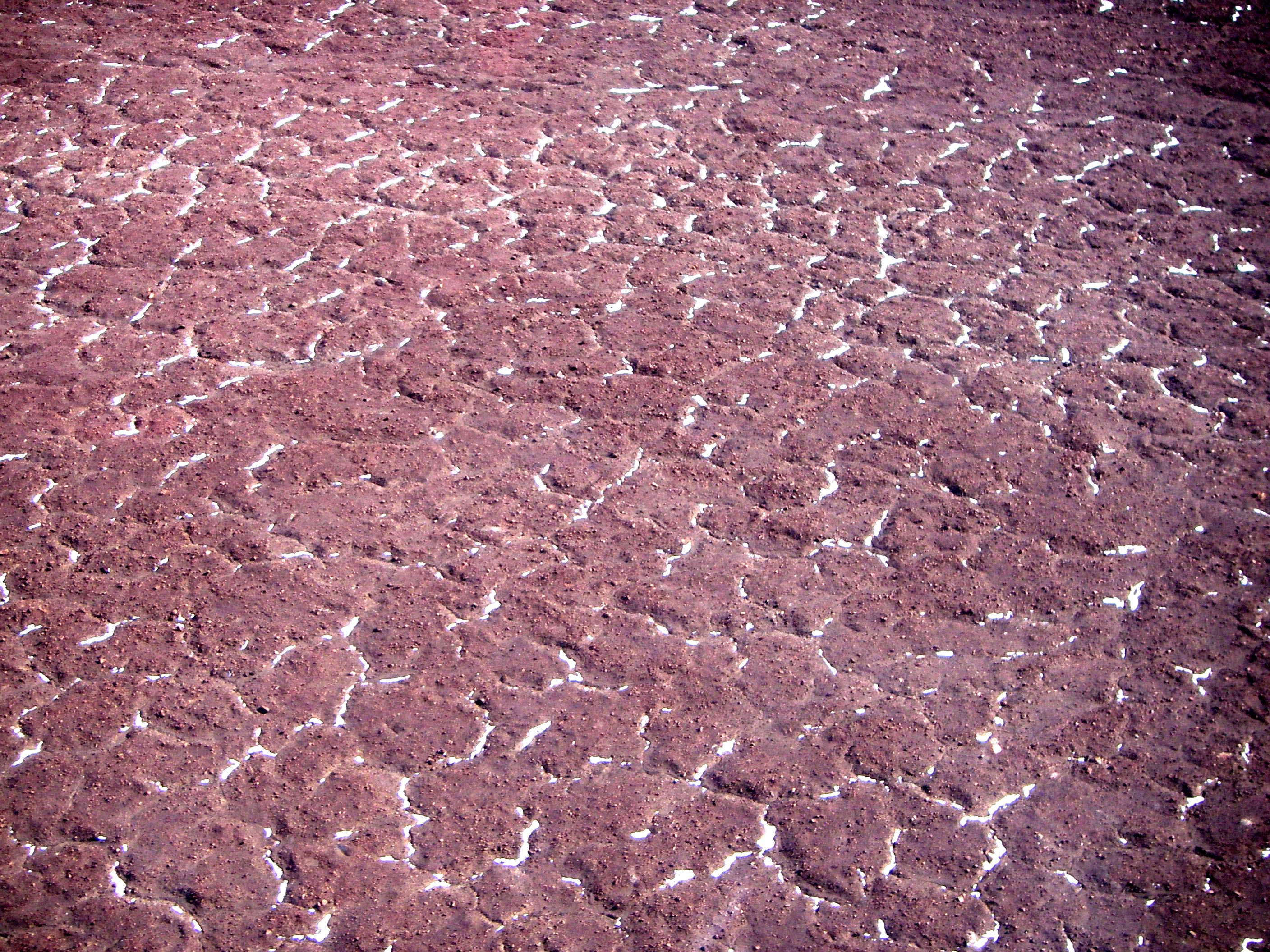 These cracks are formed by the differential sublimation of ice. The ice beneath the polygons is 8 million years old! En route to Beacon Valley, Dry Valleys, Antarctica.