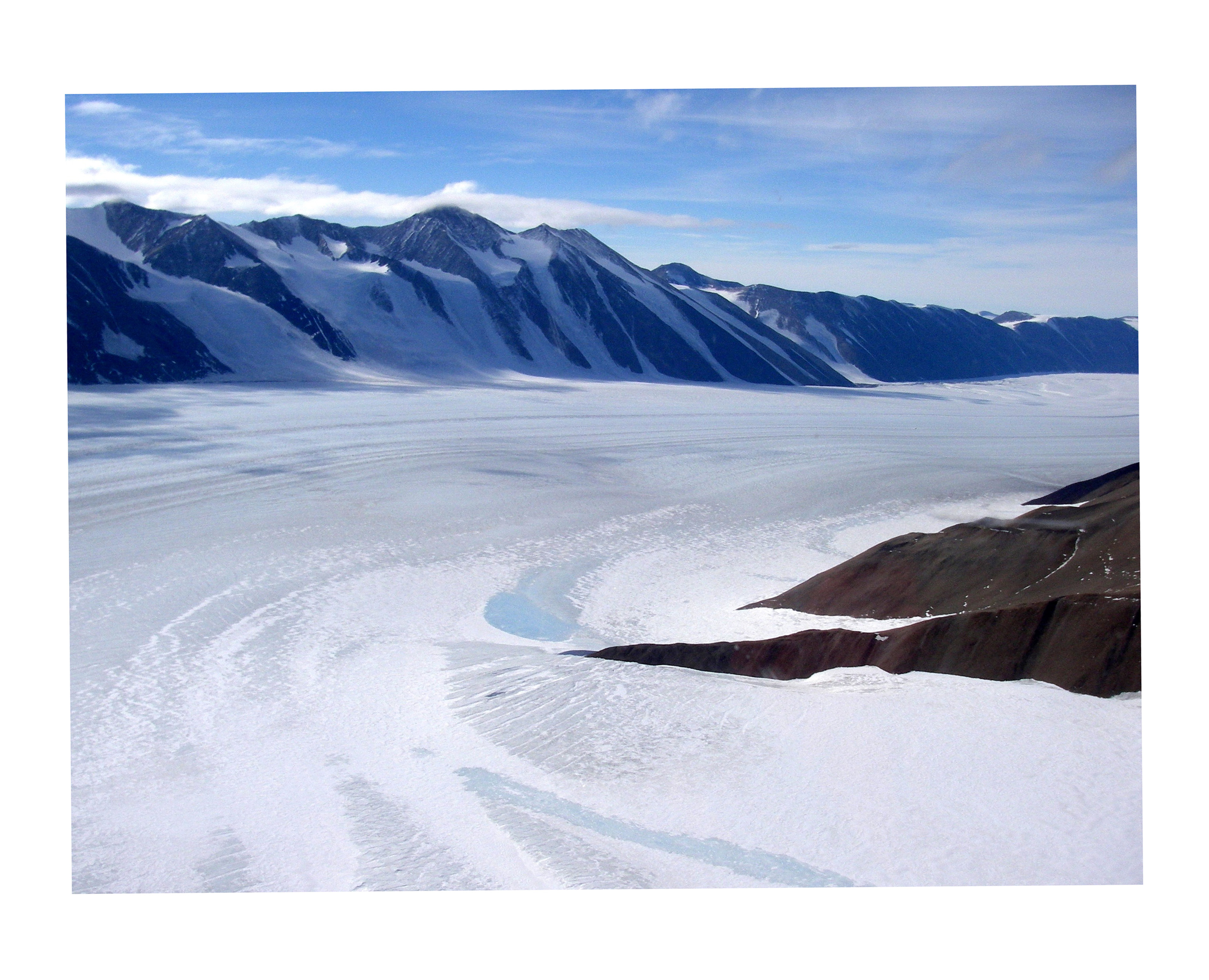 A view of Ferrar Glacier from the air. Beacon Valley, Dry Valleys, Antarctica.