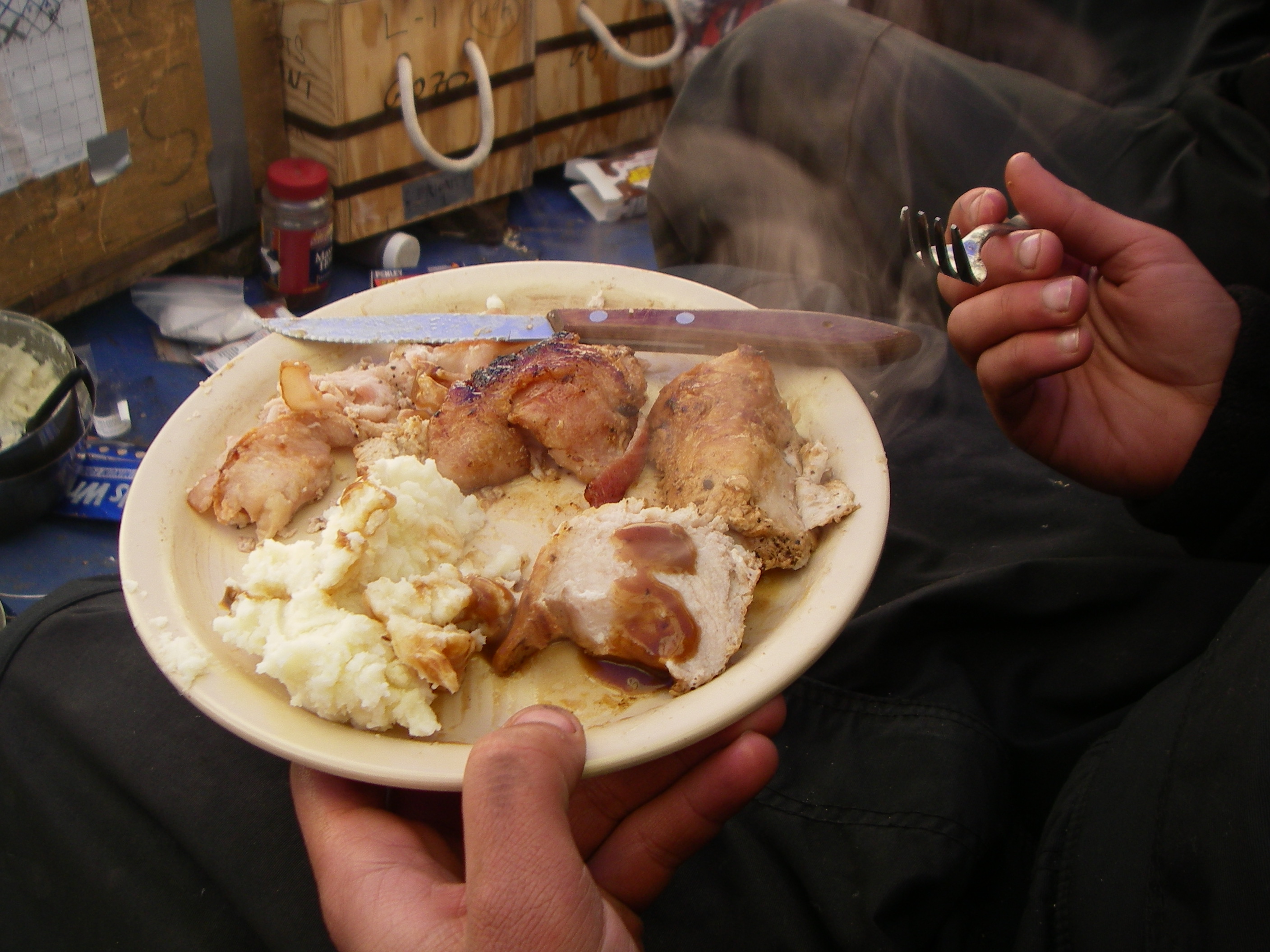 Joe prepared an excellent Thanksgiving feast. Beacon Valley, Dry Valleys, Antarctica.