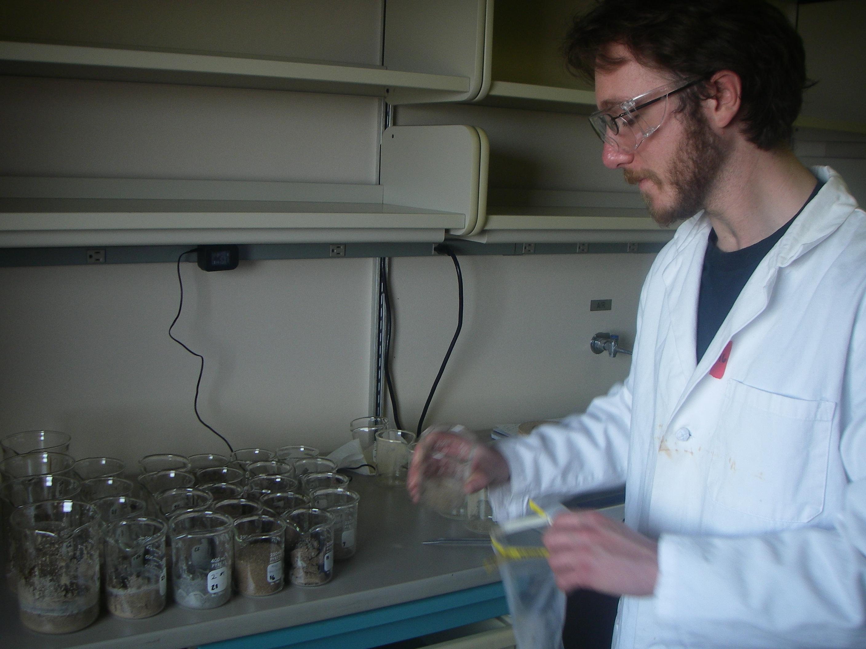 Joe Levy in the Crary Lab. Joe looks the part in his white lab coat and safety glasses. McMurdo Station, Antarctica.