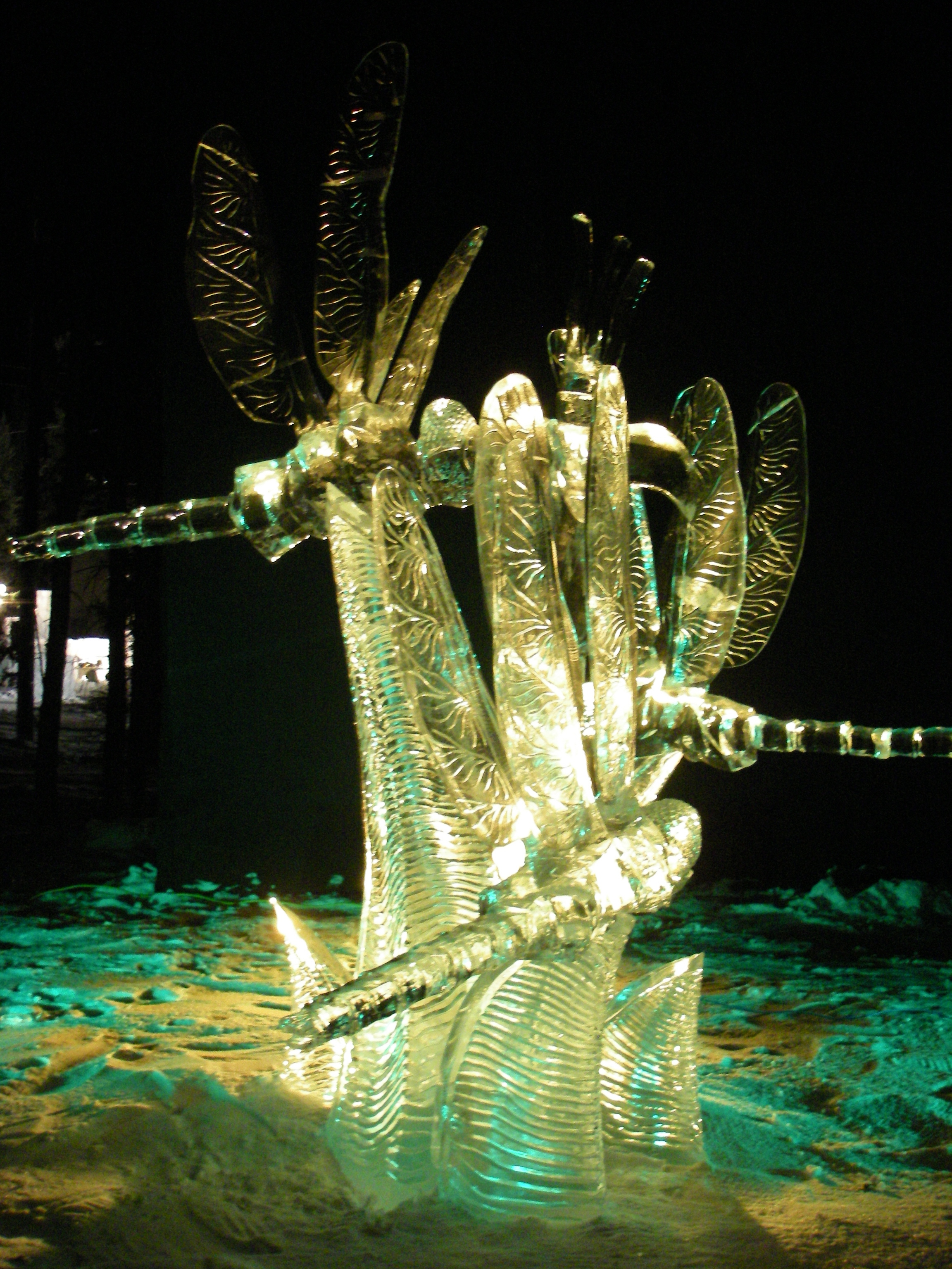 An ice carving of dragonflies at The World Ice Art Championships in Fairbanks, Alaska.