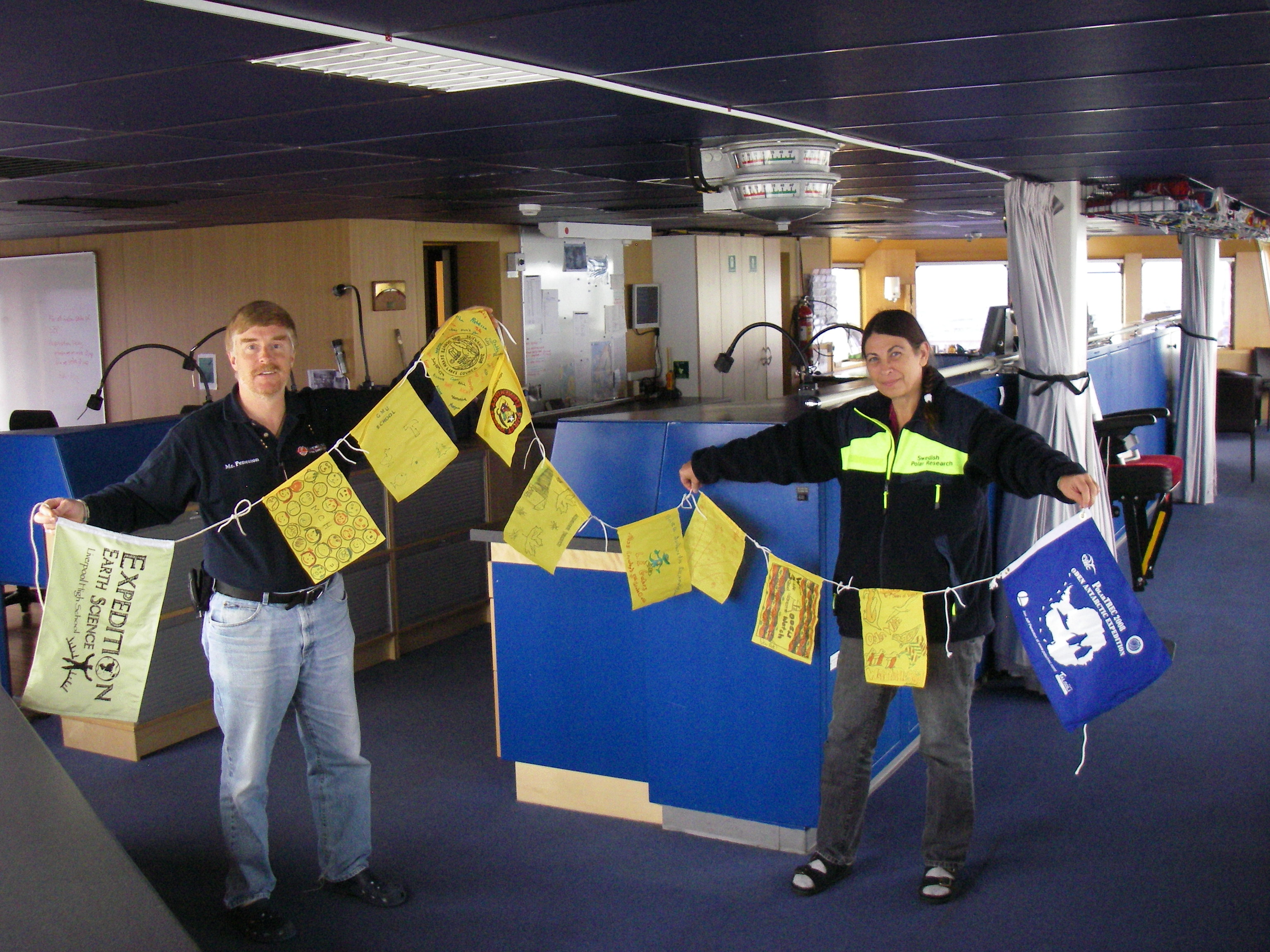 Marja Andersson is an educator from Sweden who helps train teachers to teach science. She helped me fly today’s flags on the bridge. Aboard the icebreaker Oden.