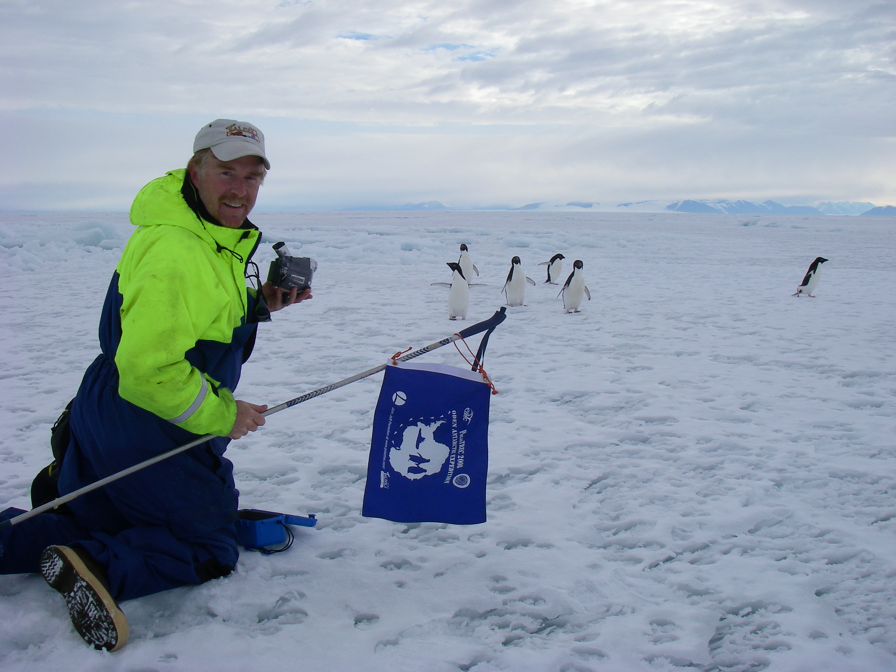 Jeff Peneston: "I have never seen a wild animal that was so easy to photograph. Adélies will run long distances across the sea ice as their curiosity drives them to check out new things, like teachers visiting their icy world." On the sea ice of McMurdo Sound, Antarctica.