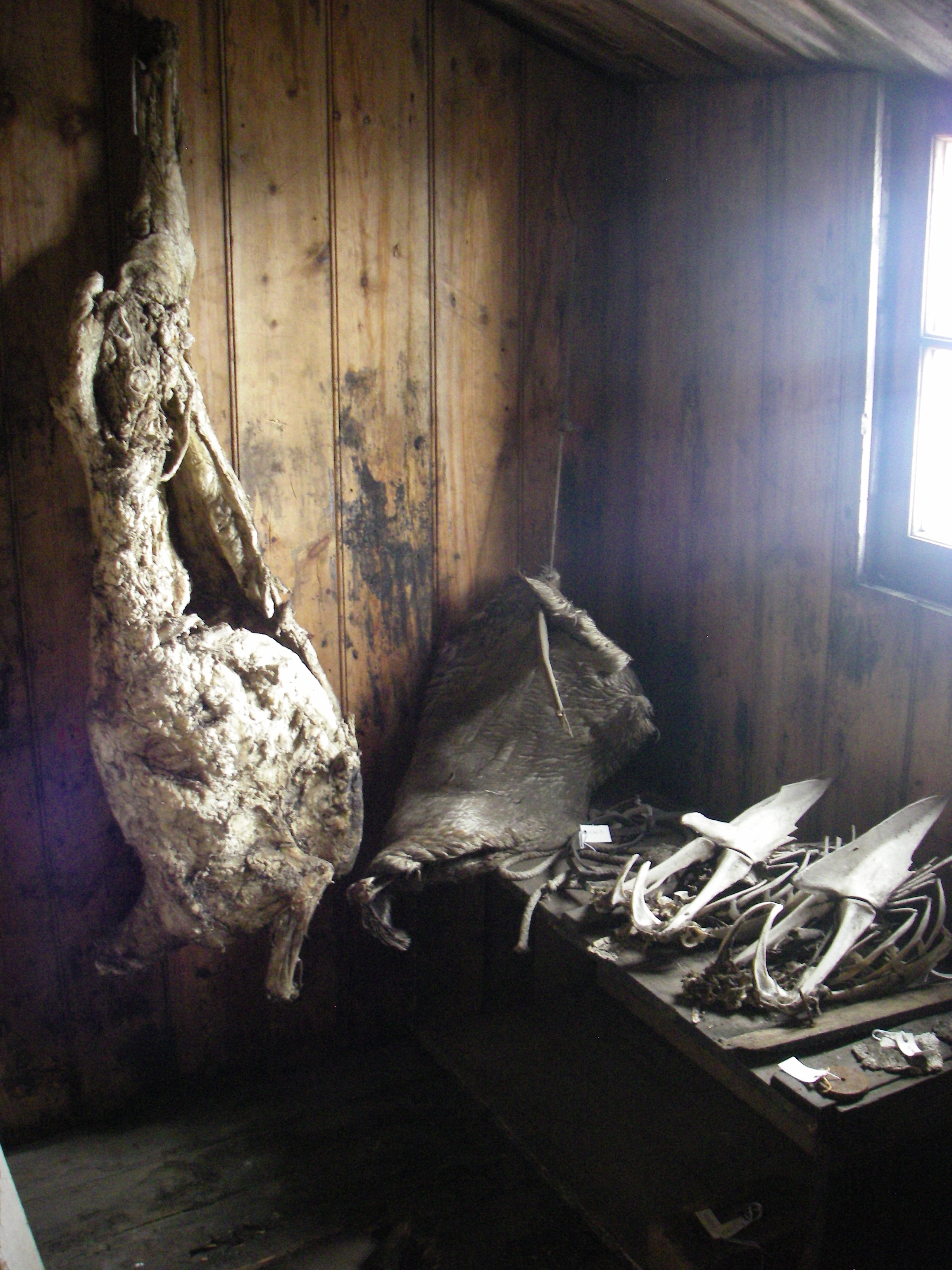 After nearly 100 years, the cold dry climate has preserved the carcasses of sheep that were brought to Scott’s Discover Hut as part of the food supply. You can also see the skeletons of Emperor Penguins that the early polar explorers killed and ate. Near McMurdo Station, Antarctica.