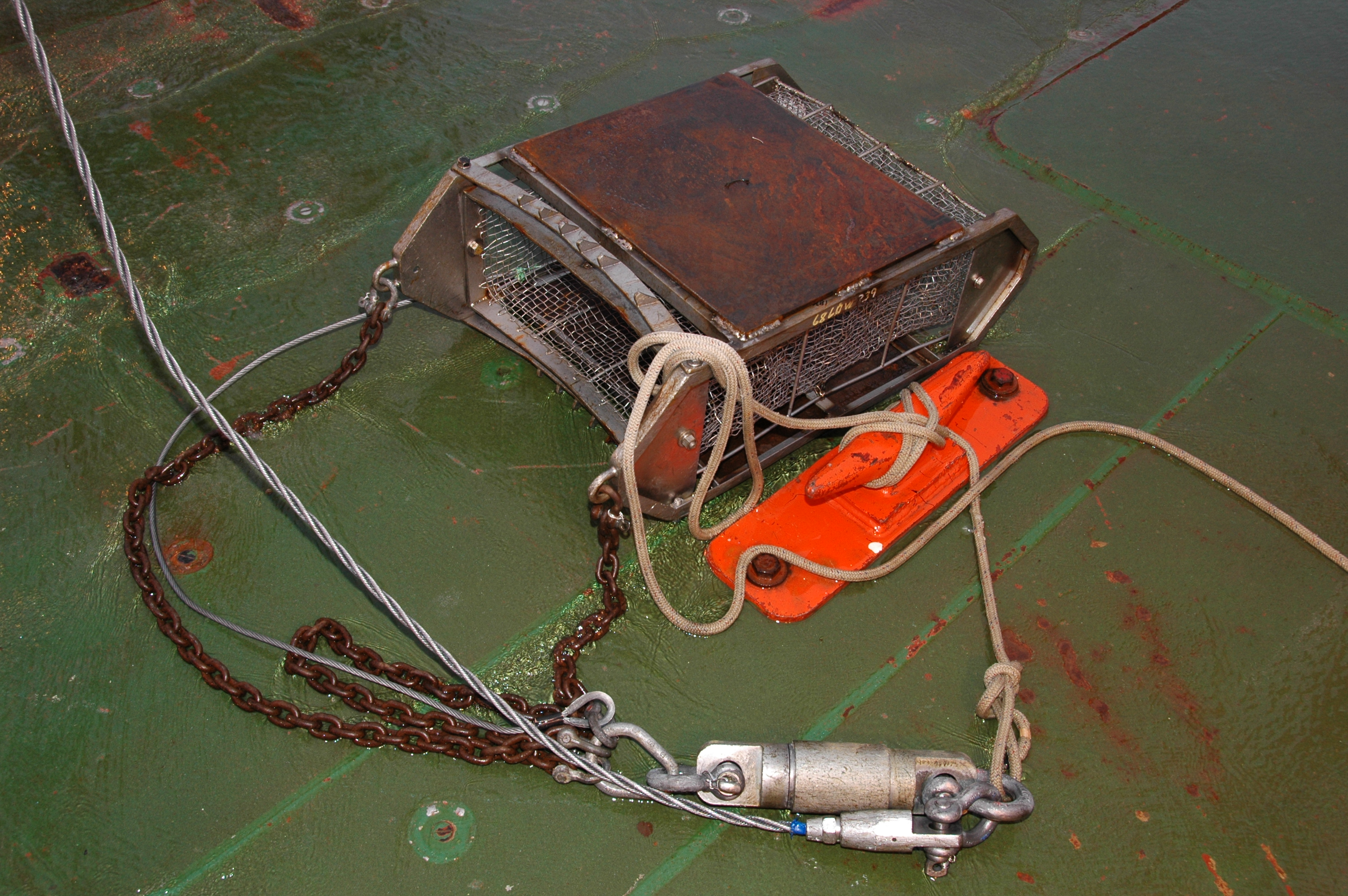 The box dredge on the back deck. Aboard the Nathaniel B. Palmer at the Shackleton Fracture Zone in the Drake Passage in the Southern Ocean.