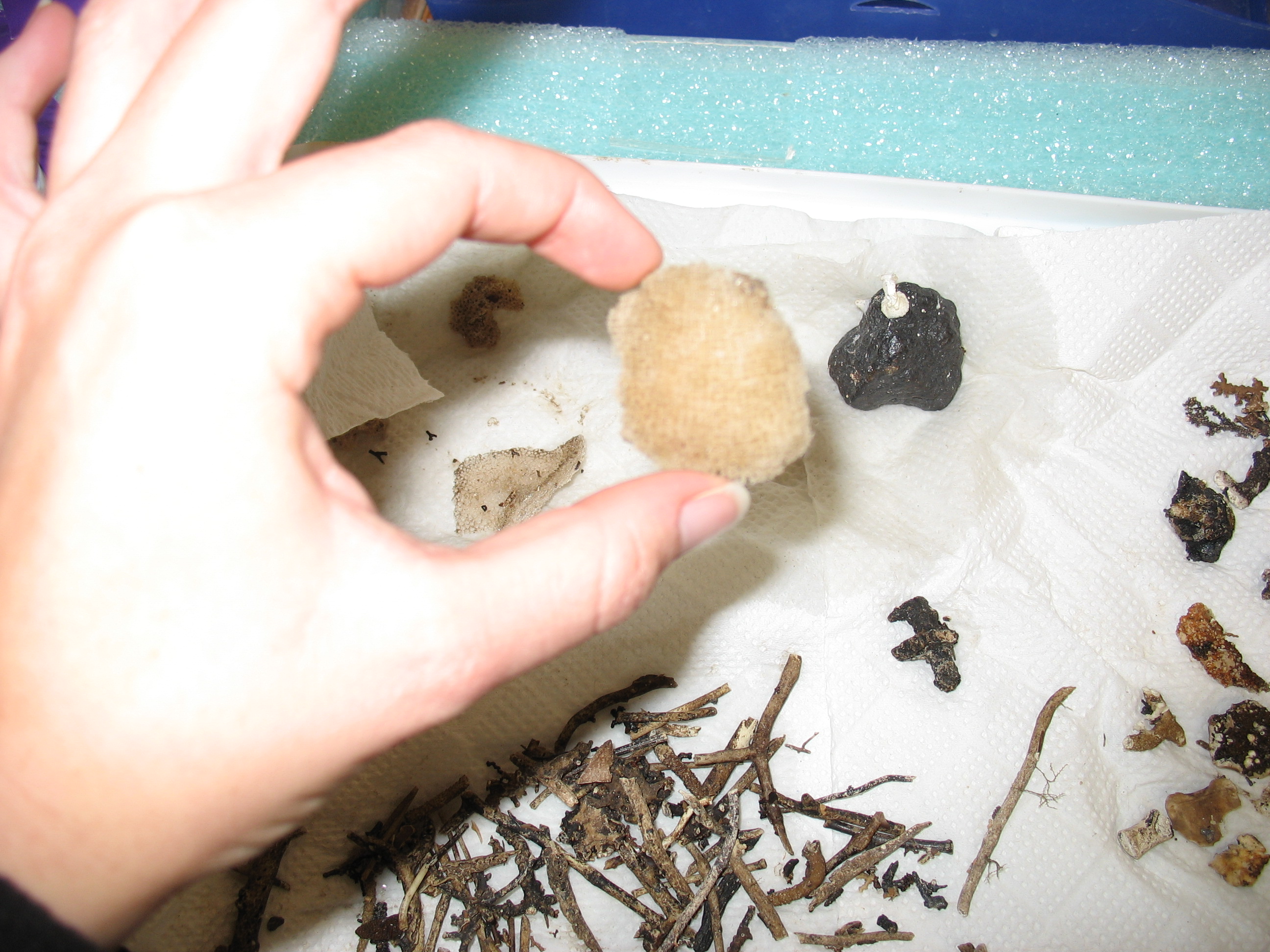 A small bryozoans that were collected in the box dredge. Aboard the Nathaniel B. Palmer in the Drake Passage in the Southern Ocean.