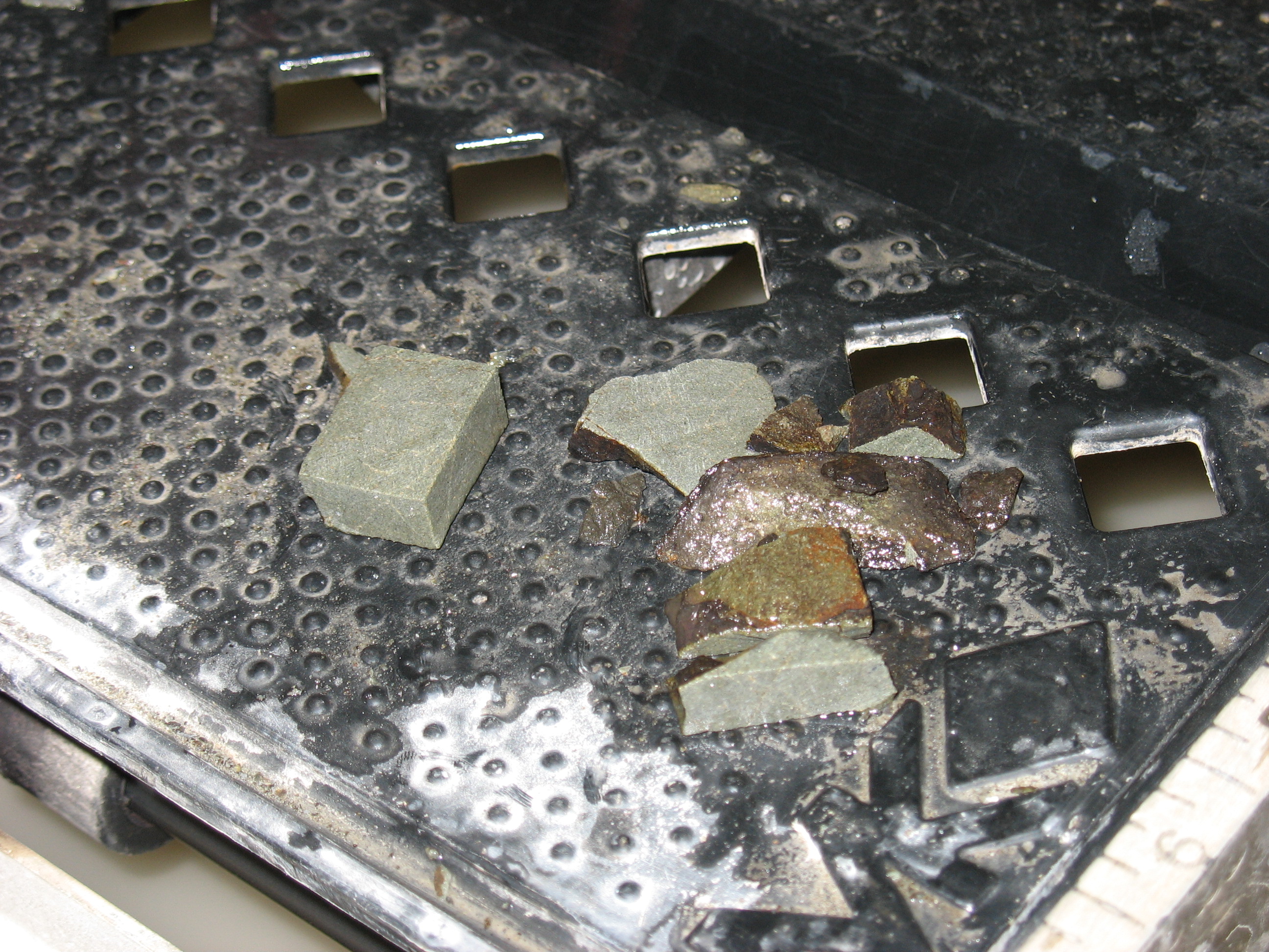Rocks that had been cut by the wet rock saw. Aboard the Nathaniel B. Palmer in the Drake Passage in the South Atlantic Ocean.