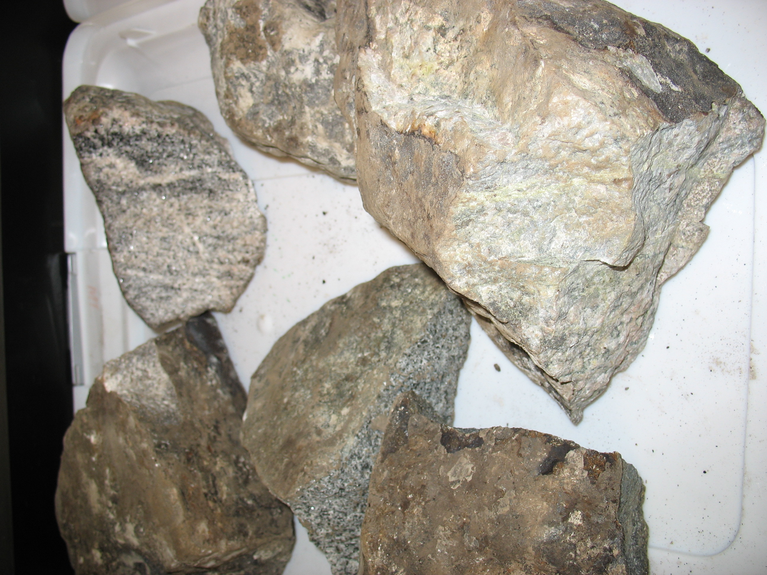 Two igneous rocks that were collected from the rock dredge. Aboard the Nathaniel B. Palmer in the Drake Passage in the South Atlantic Ocean.