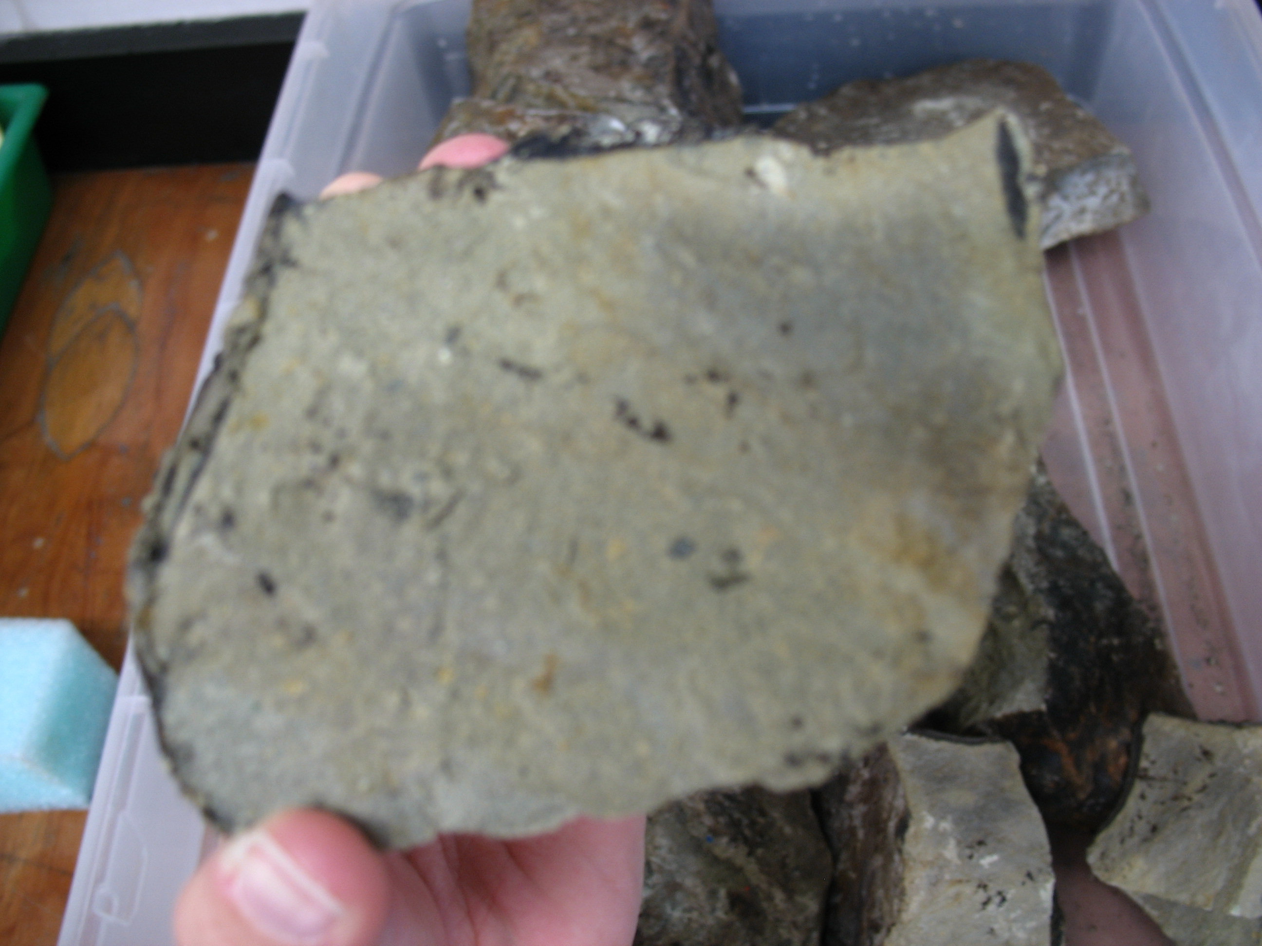 Volcanic ash sediments in the rock. Aboard the Nathaniel B. Palmer in the Drake Passage in the South Atlantic Ocean.
