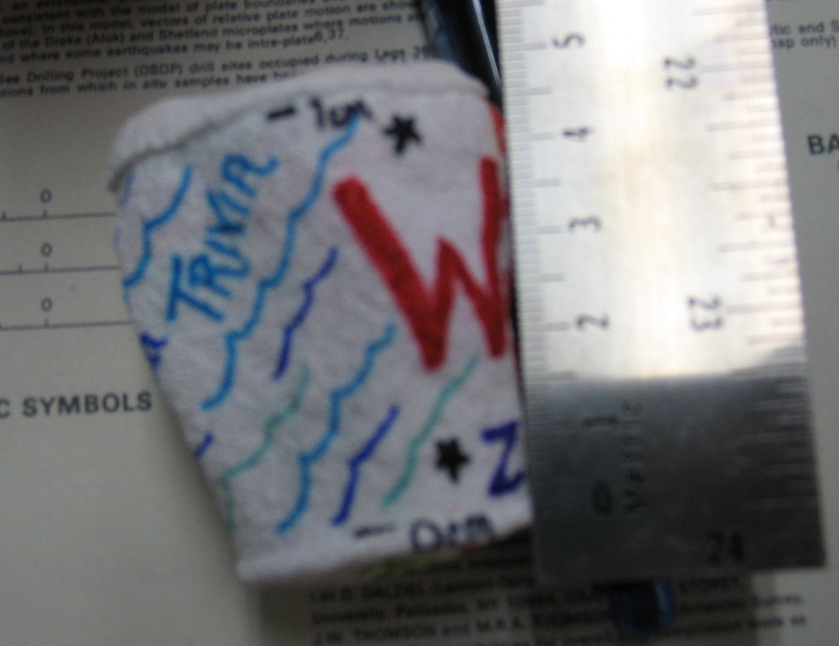Katie Pena's decorated styrofoam cup after it has returned to the ship, after going to the ocean floor. Aboard the Nathaniel B. Palmer in the Drake Passage in the Southern Ocean.