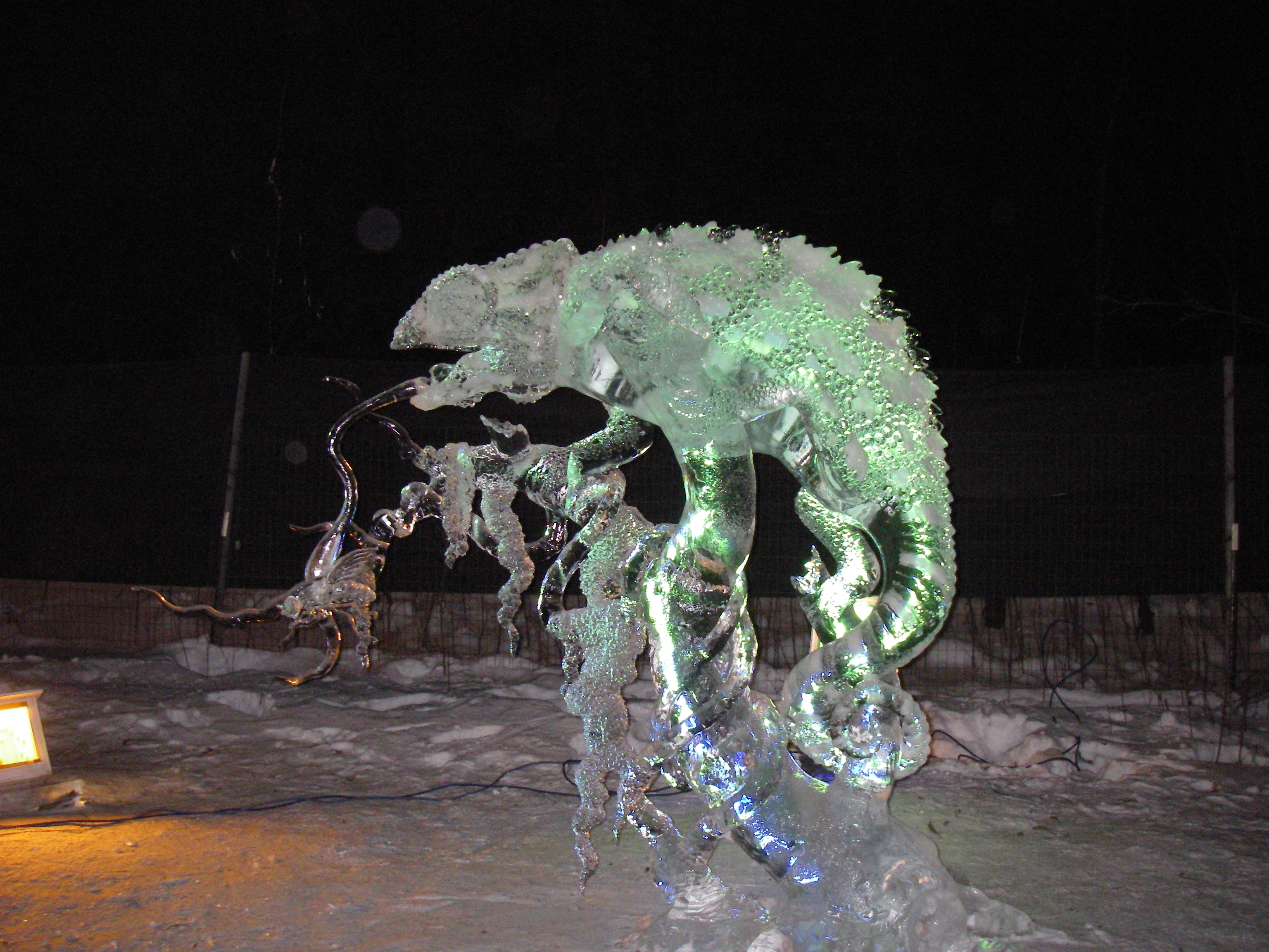 A lizard ice sculpture at the World Ice Art Championships in Fairbanks, Alaska.