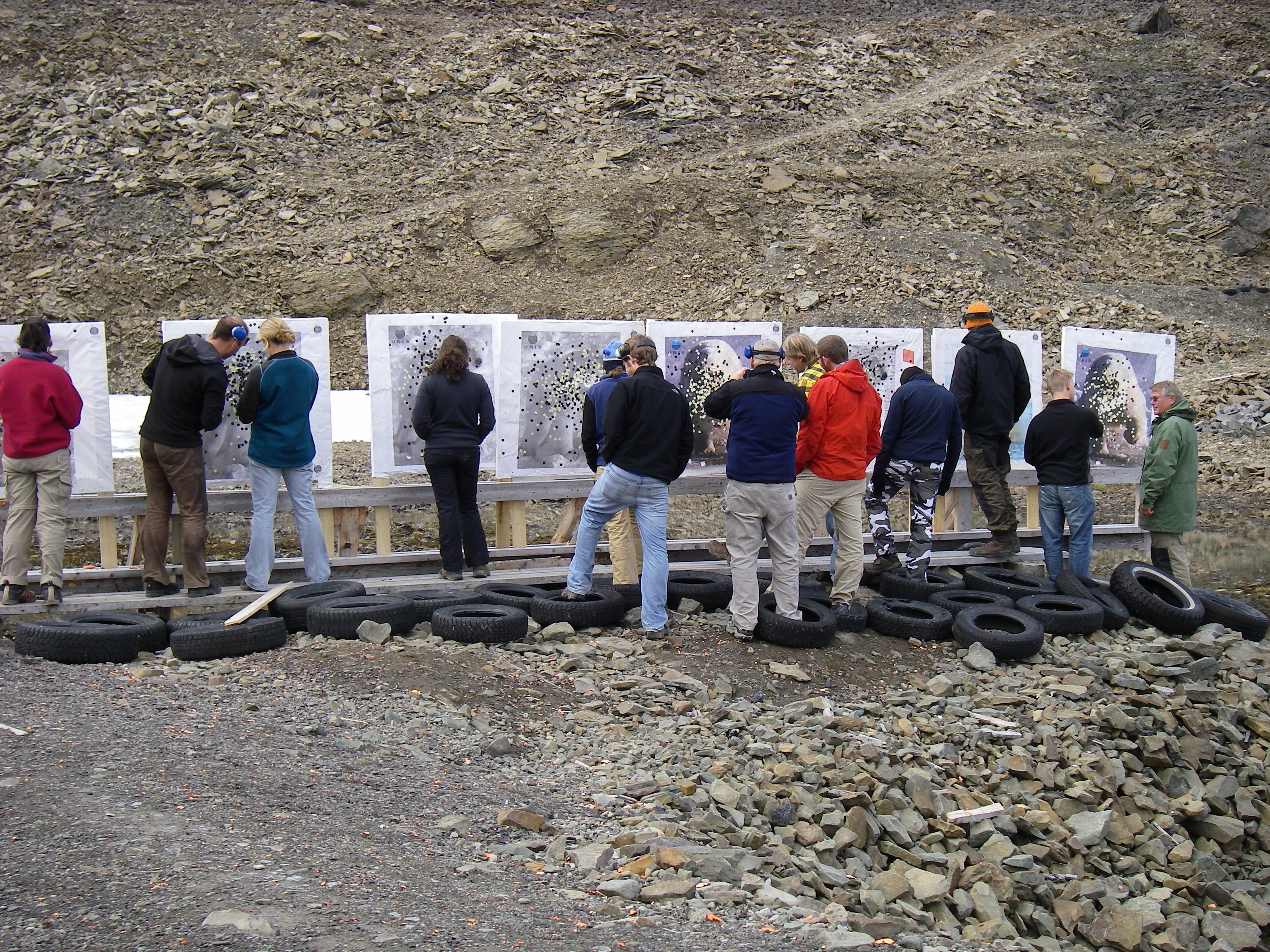 The goal was to shoot the polar bear poster in the upper torso. Longyearbyen, Svalbard, Norway.