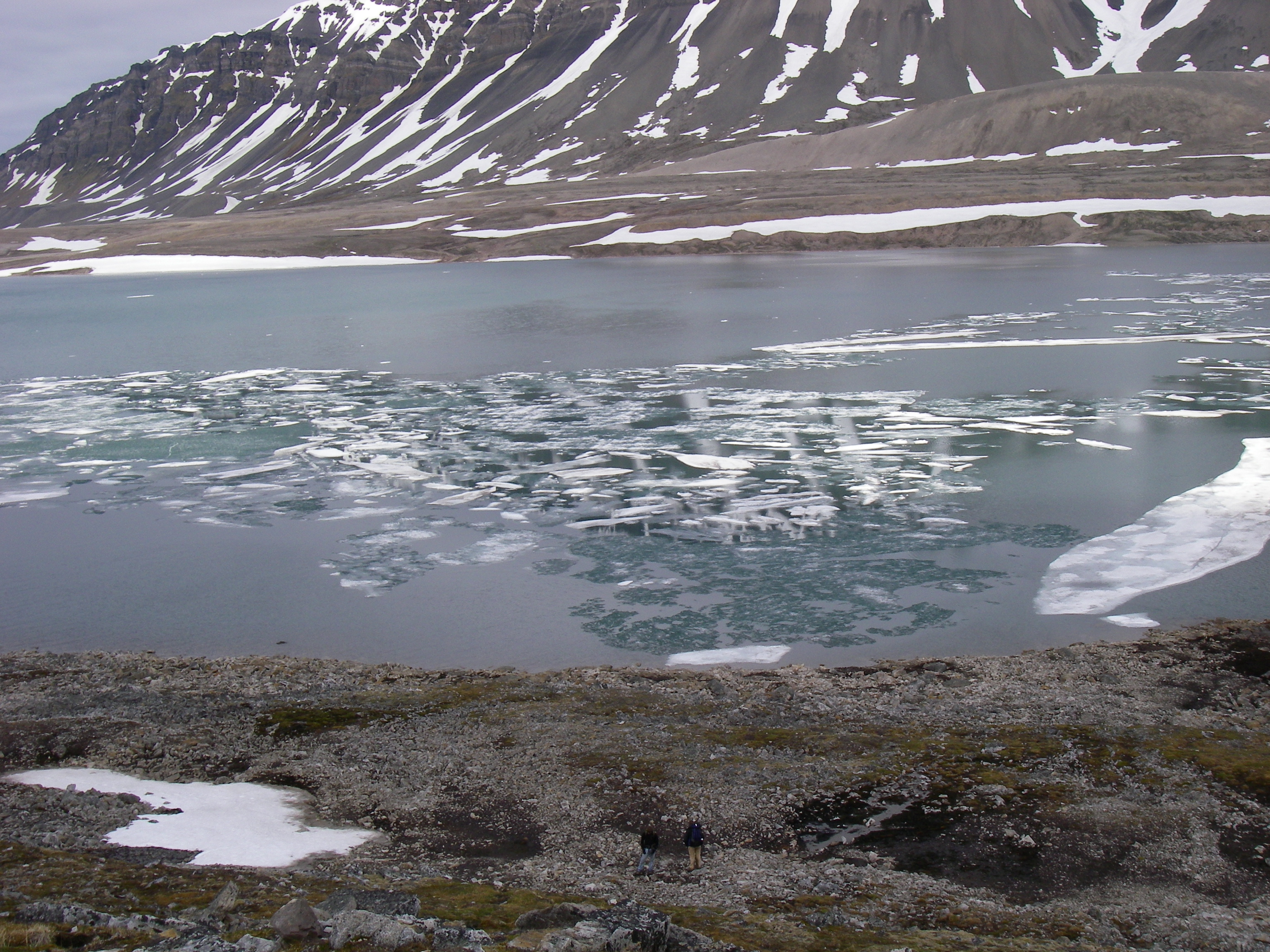Even in July there is still ice in the lake. Kapp Linne, Svalbard, Norway.