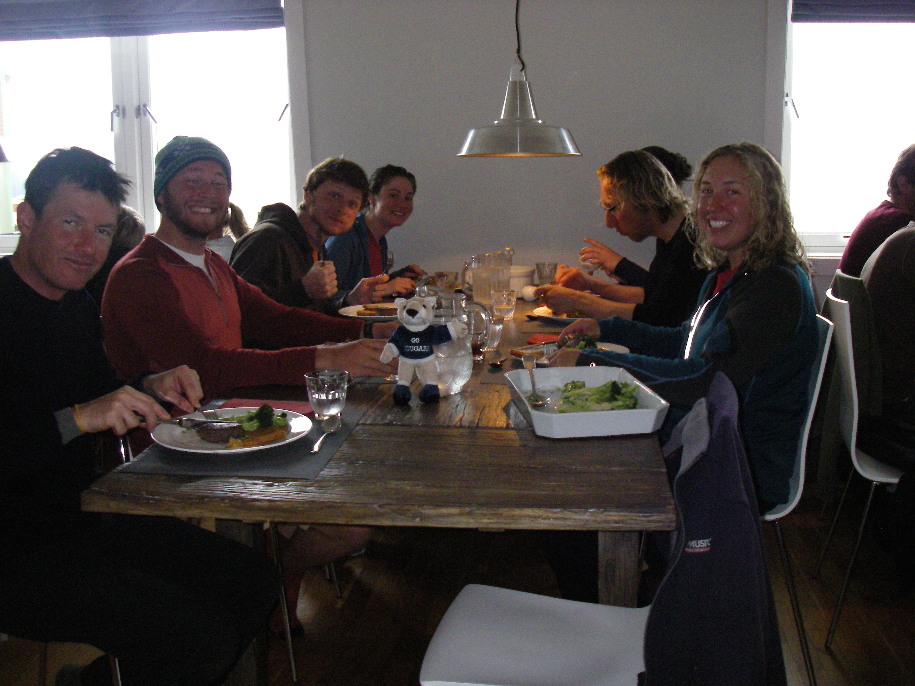 Missy Holzer says, "dinners at the station are family style with platters and platters of food." Kapp Linne, Svalbard, Norway.