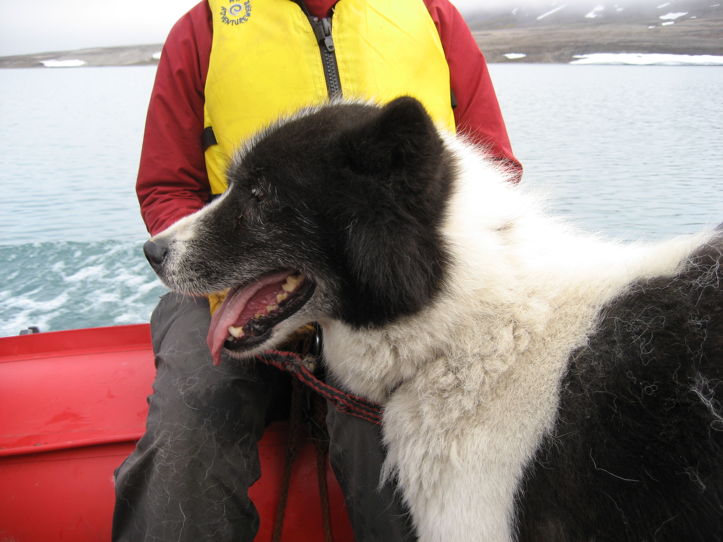 Missy Holzer says, "Ming the dog belongs to arctic scientist Anne Hormes. They joined us in the field today and went up a cliff at Lake Kongress to install a plumecam." Linne Valley, Svalbard, Norway.
