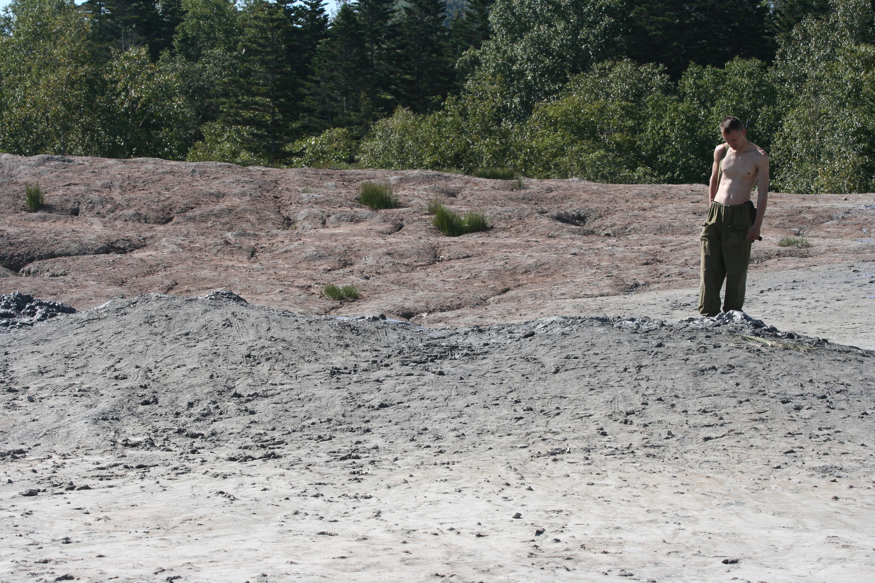 Kolya Illarianov stands next to one of several "mud volcanoes" near Sinegorsk, Sakhalin Island, Russia. Sinegorsk, Sakhalin Island, Russia.
