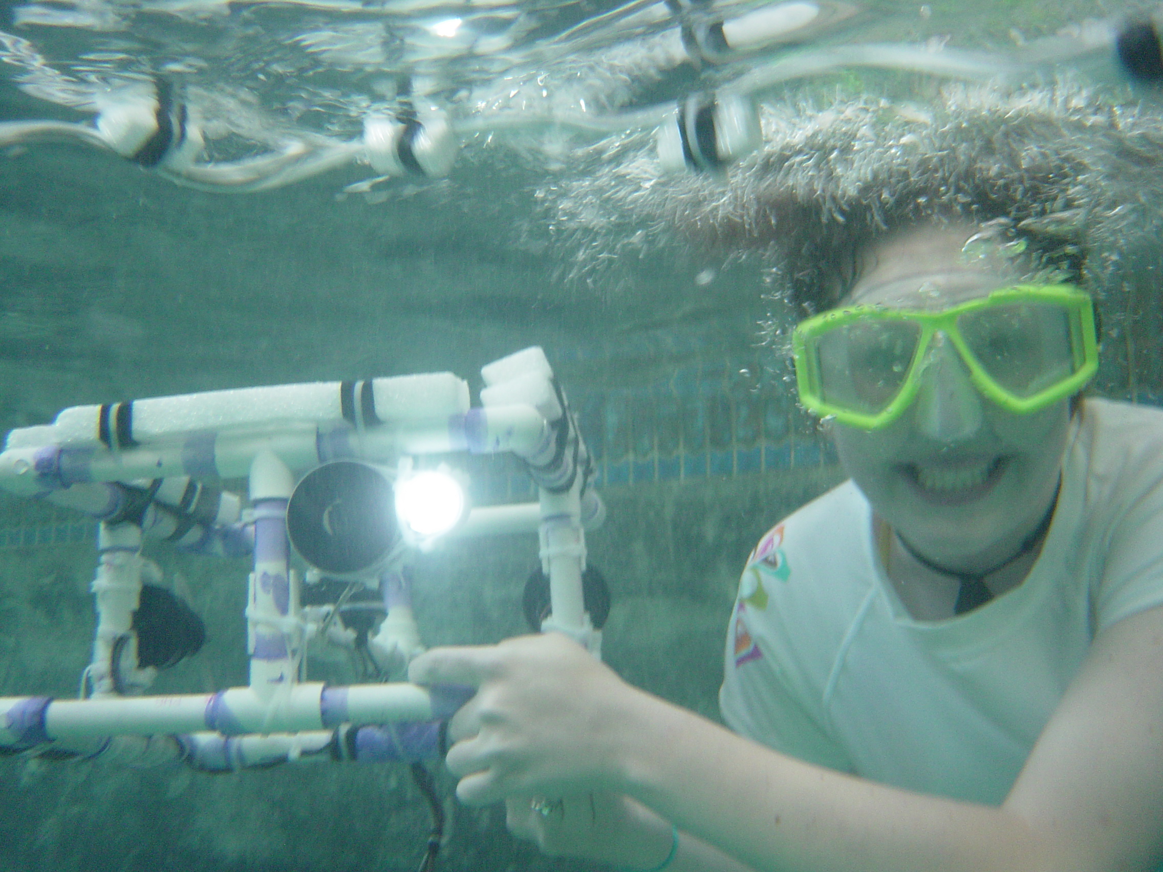 Chloe underwater with the underwater camera robot at Atlantic Aquasport in Rye, New Hampshire.