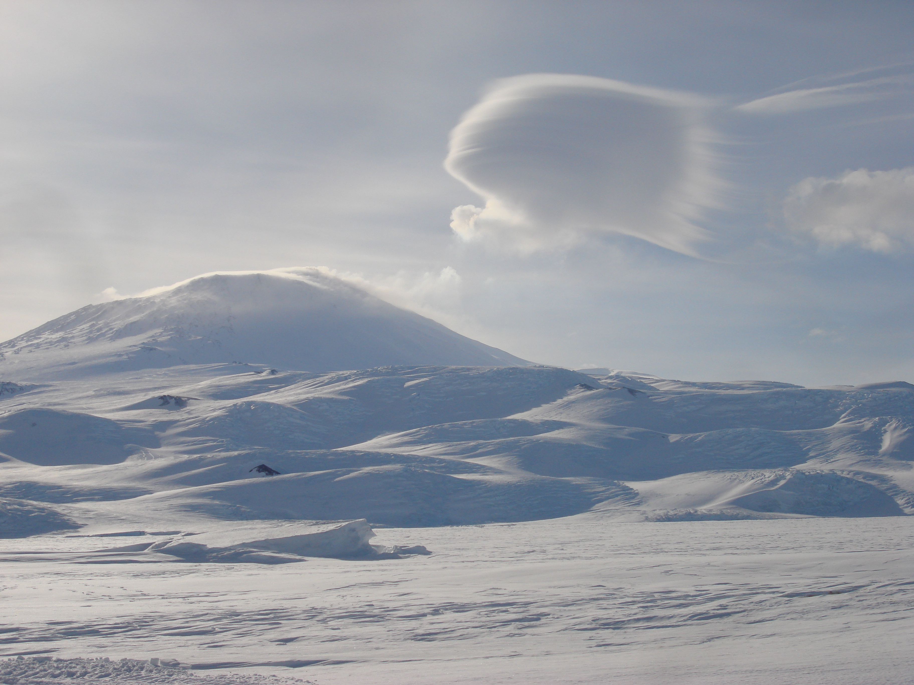 An interesting cloud hovering over Mount Erebus. McMurdo Station, Antarctica.