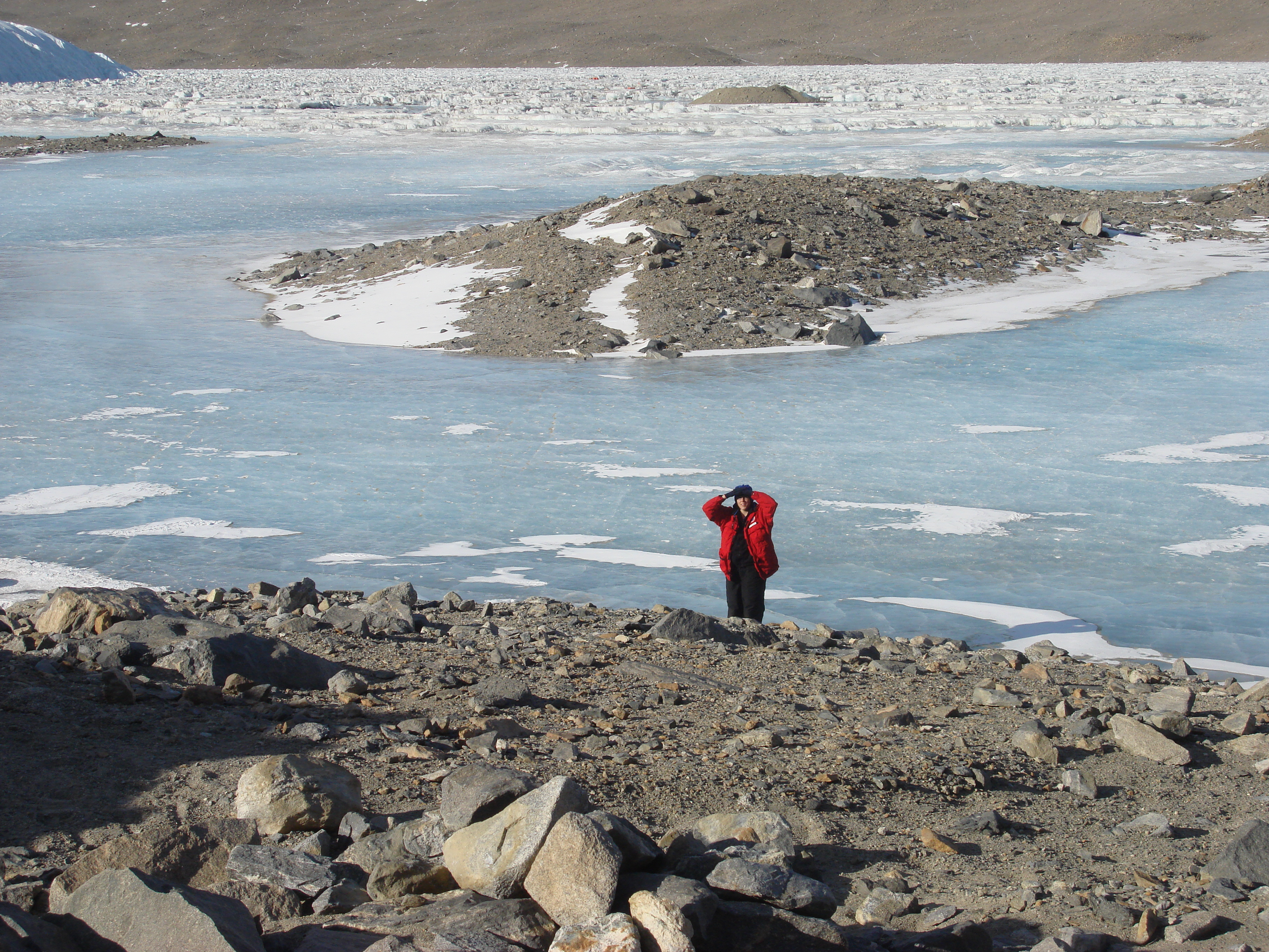 Robin Ellwood: "Annika seems spellbound by the beauty of the area." Lake Hoare, Dry Valleys, Antarctica.