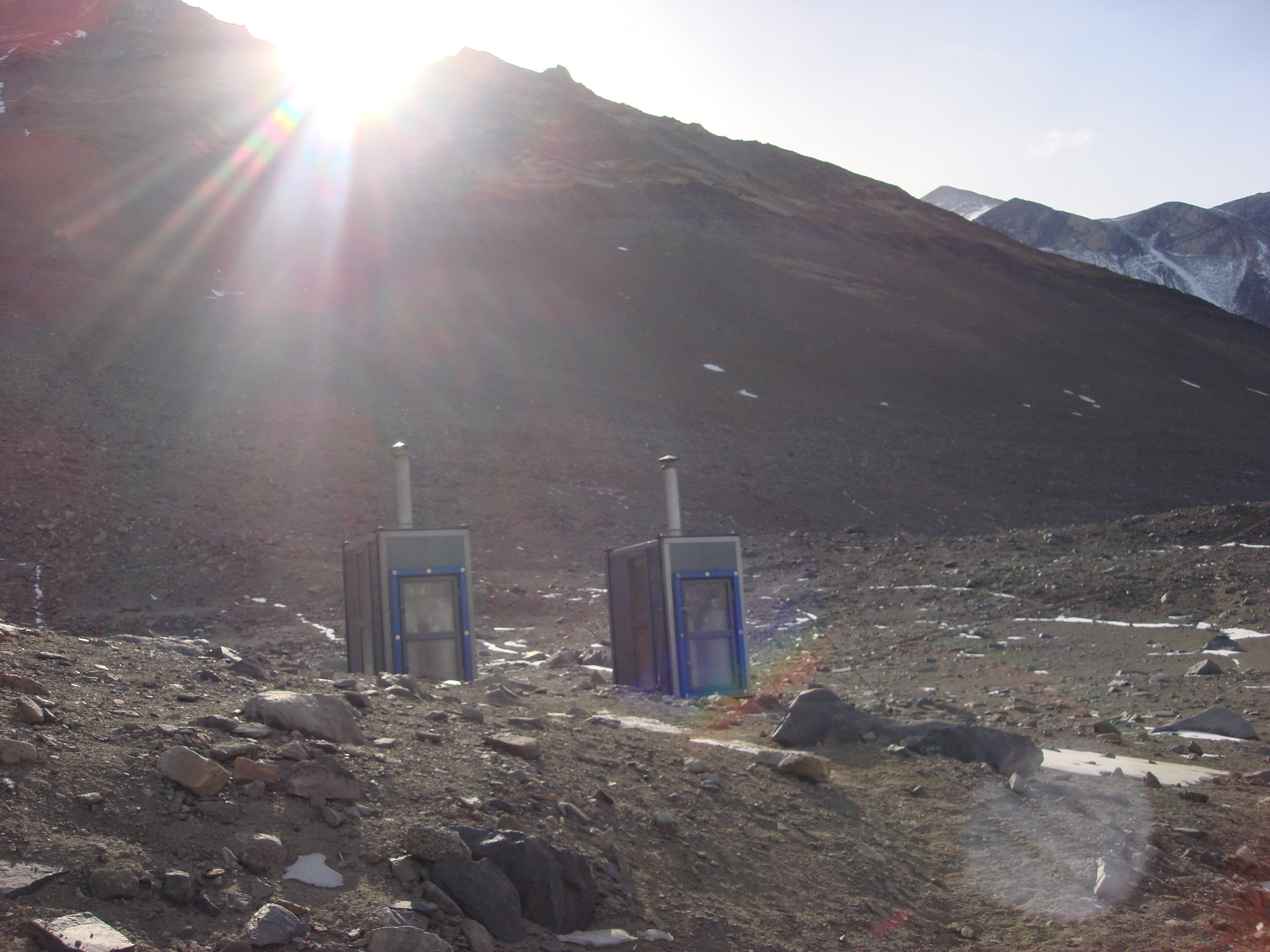The team's "rocket toilets". Lake Hoare, Dry Valleys, Antarctica.