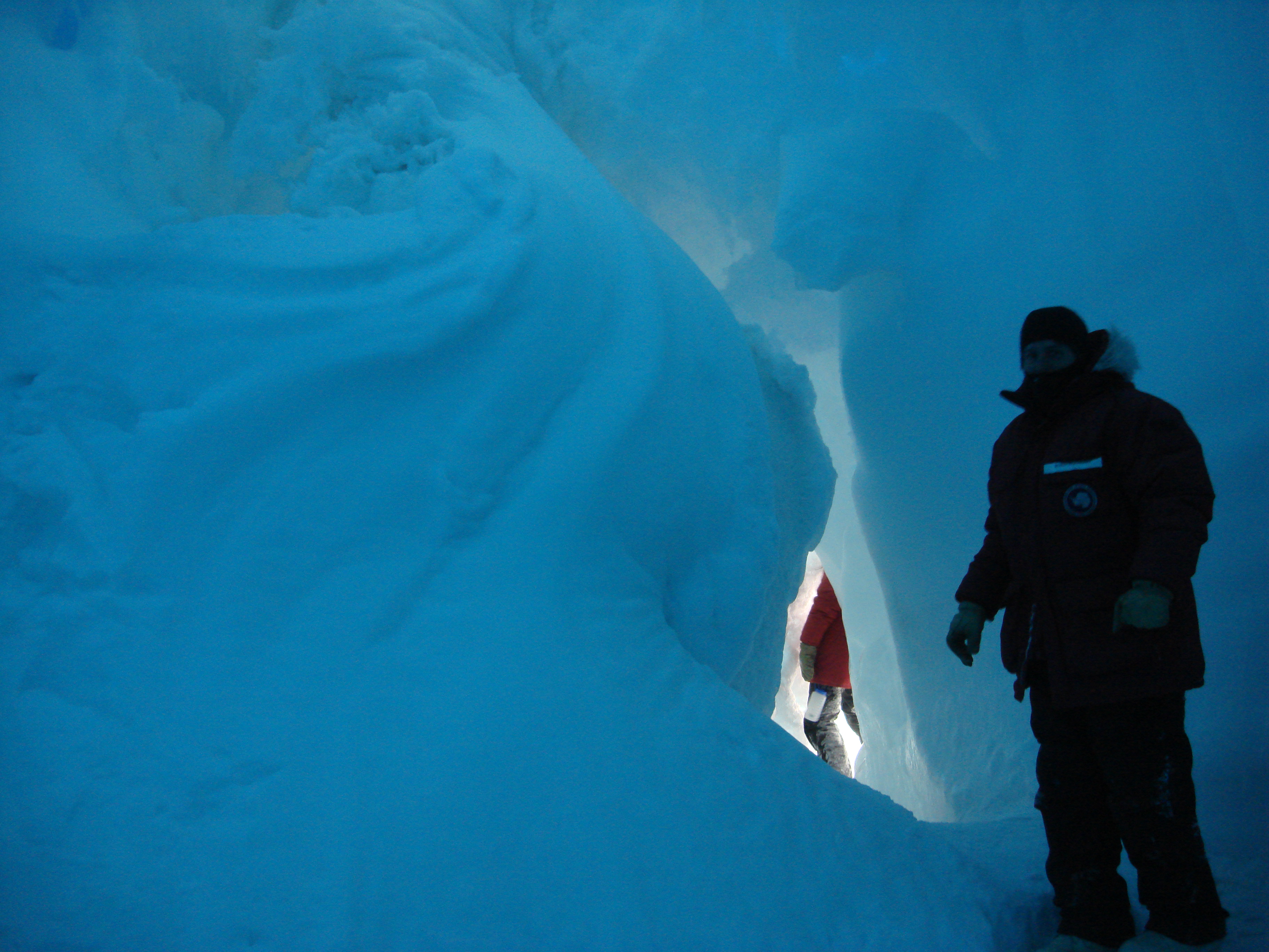 Robin Ellwood inside the ice cave. McMurdo Sound, Antarctica.