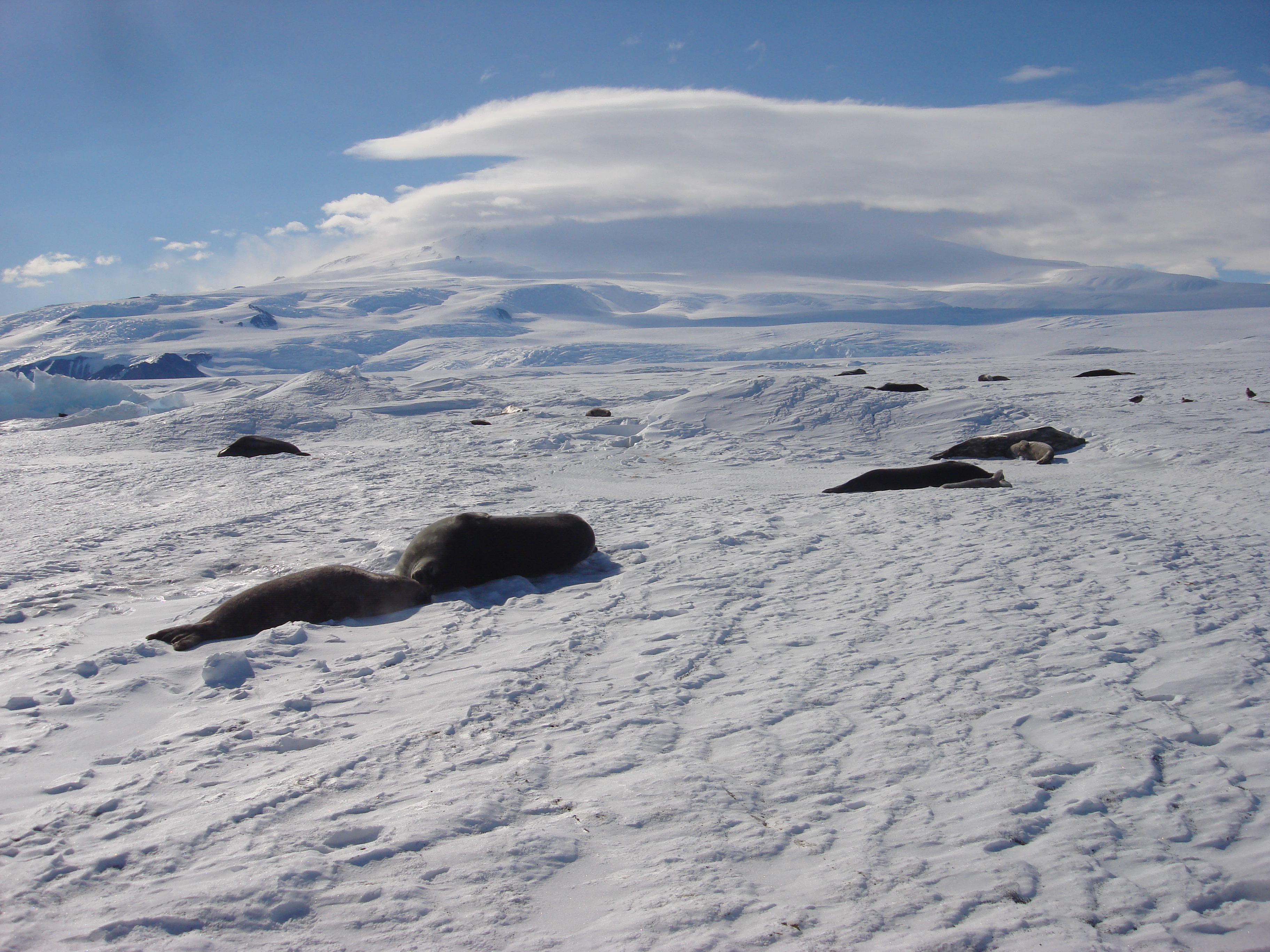 A Weddell seal nursery at Turtle Rock, Antarctica.