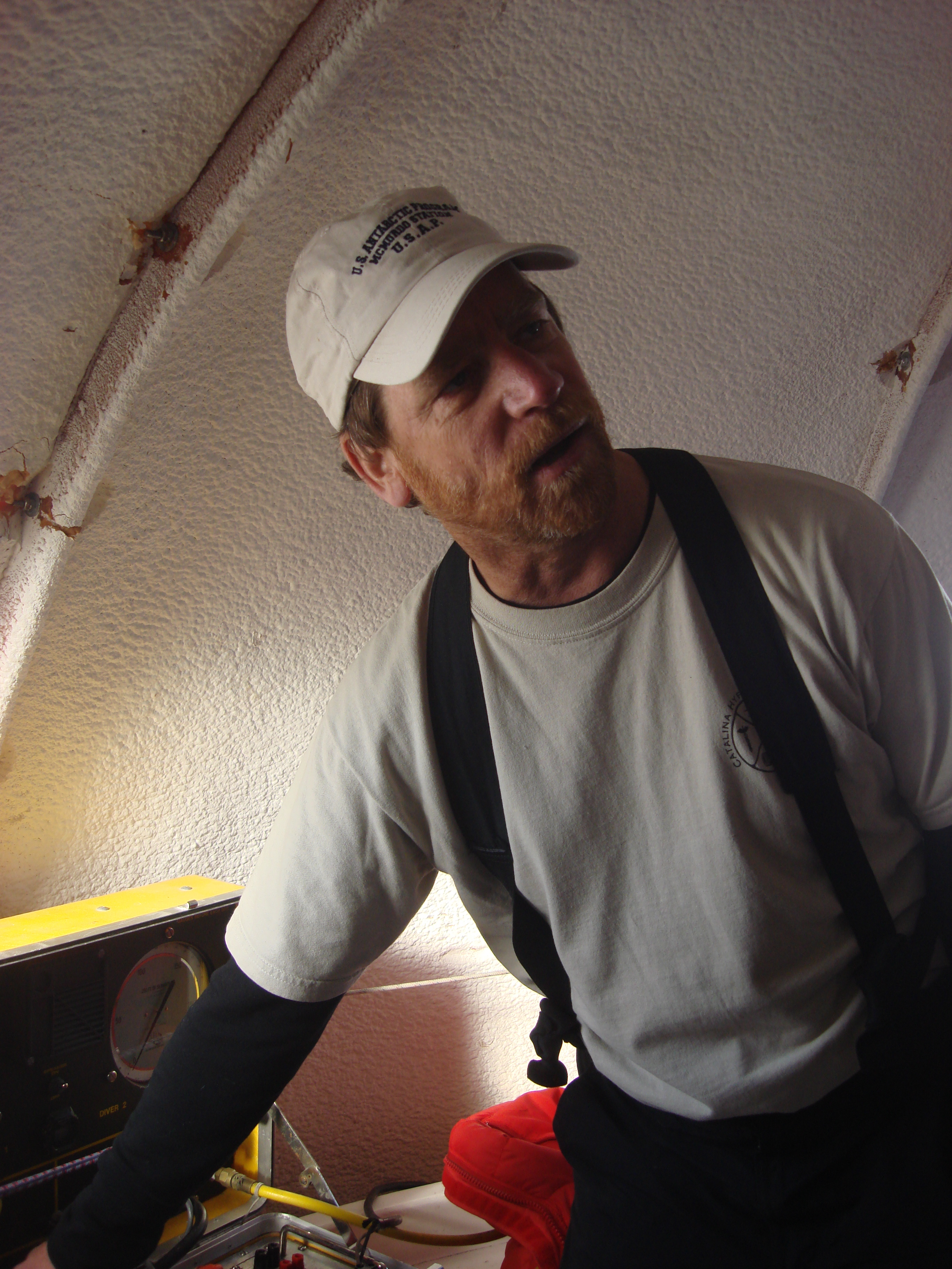 Rob reviews the communications system. McMurdo Station, Antarctica.