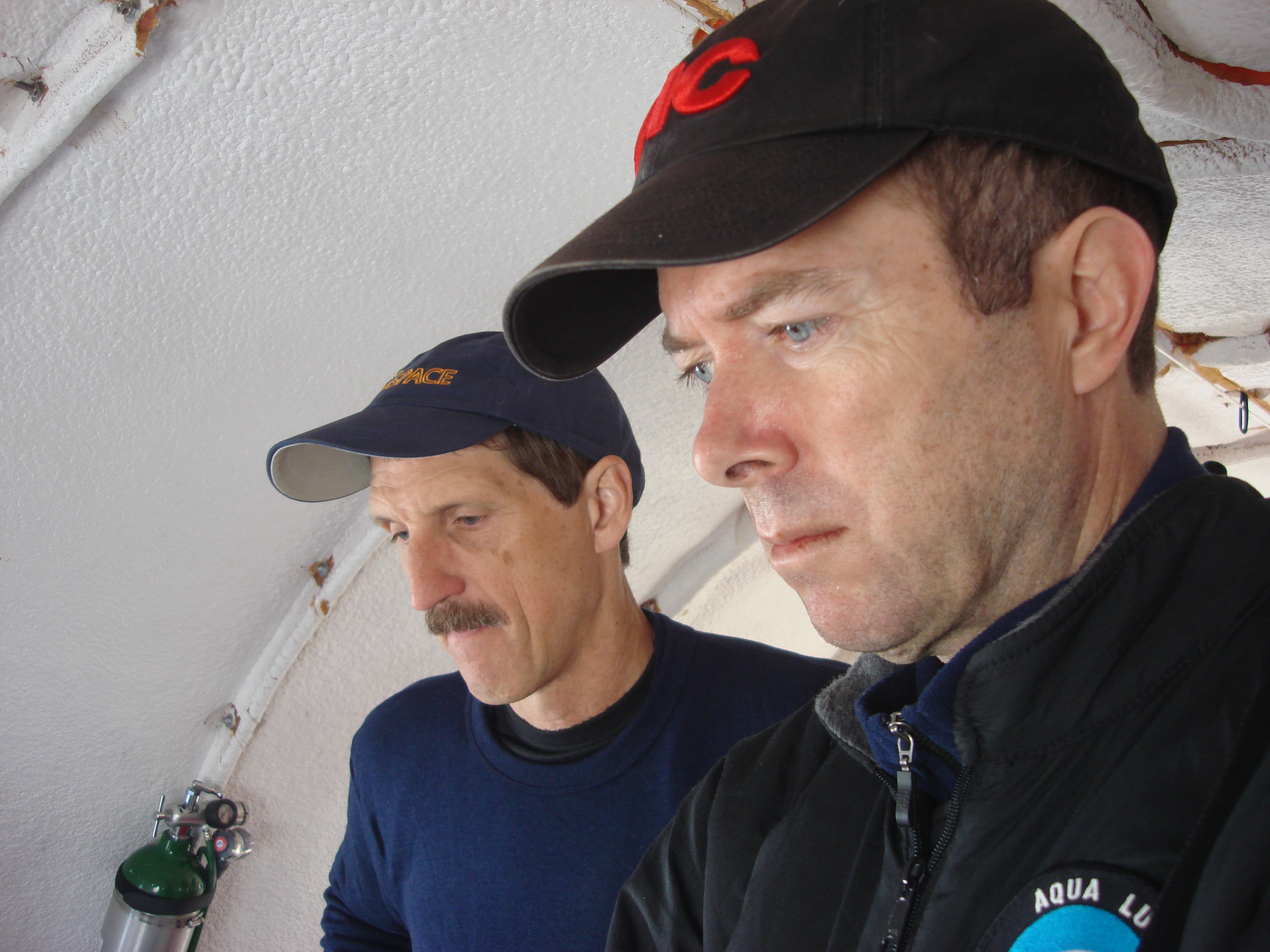 Robin Ellwood: "Bill and Peter Doran listen intently." McMurdo Station, Antarctica.