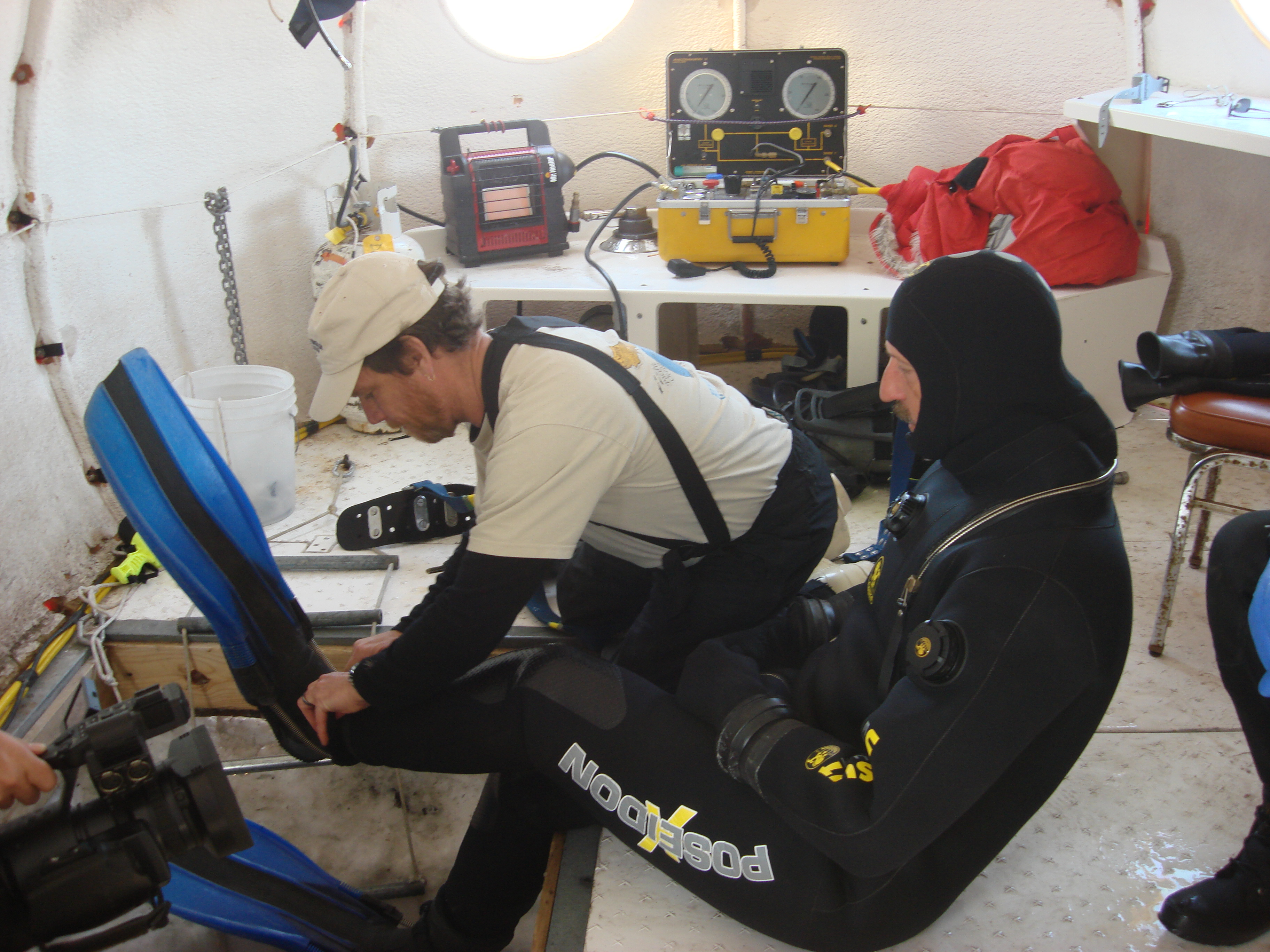 Now it is Bill's turn to take a dive. McMurdo Station, Antarctica.