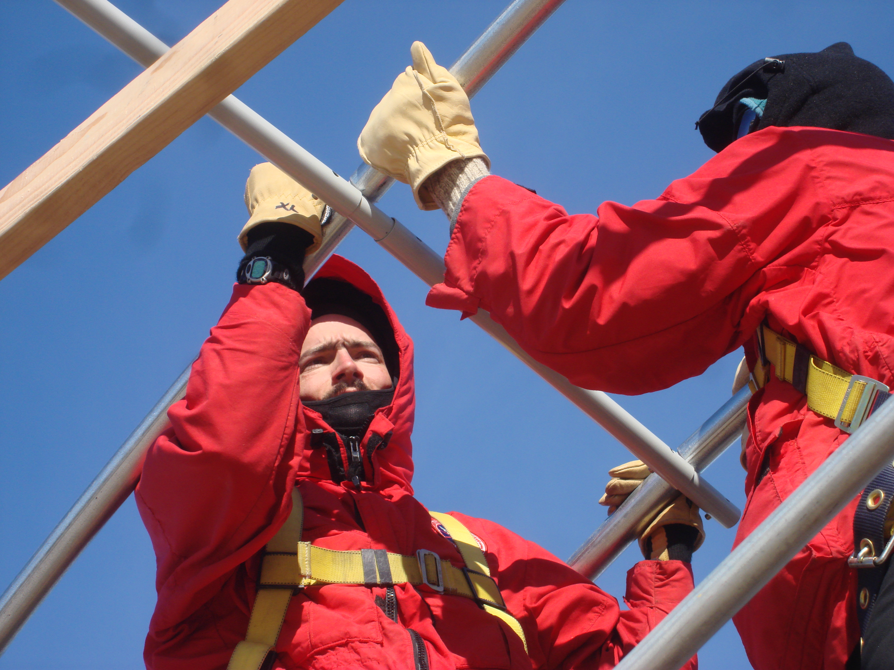 Kristoff secures a crossbar joint. McMurdo Station, Antarctica.